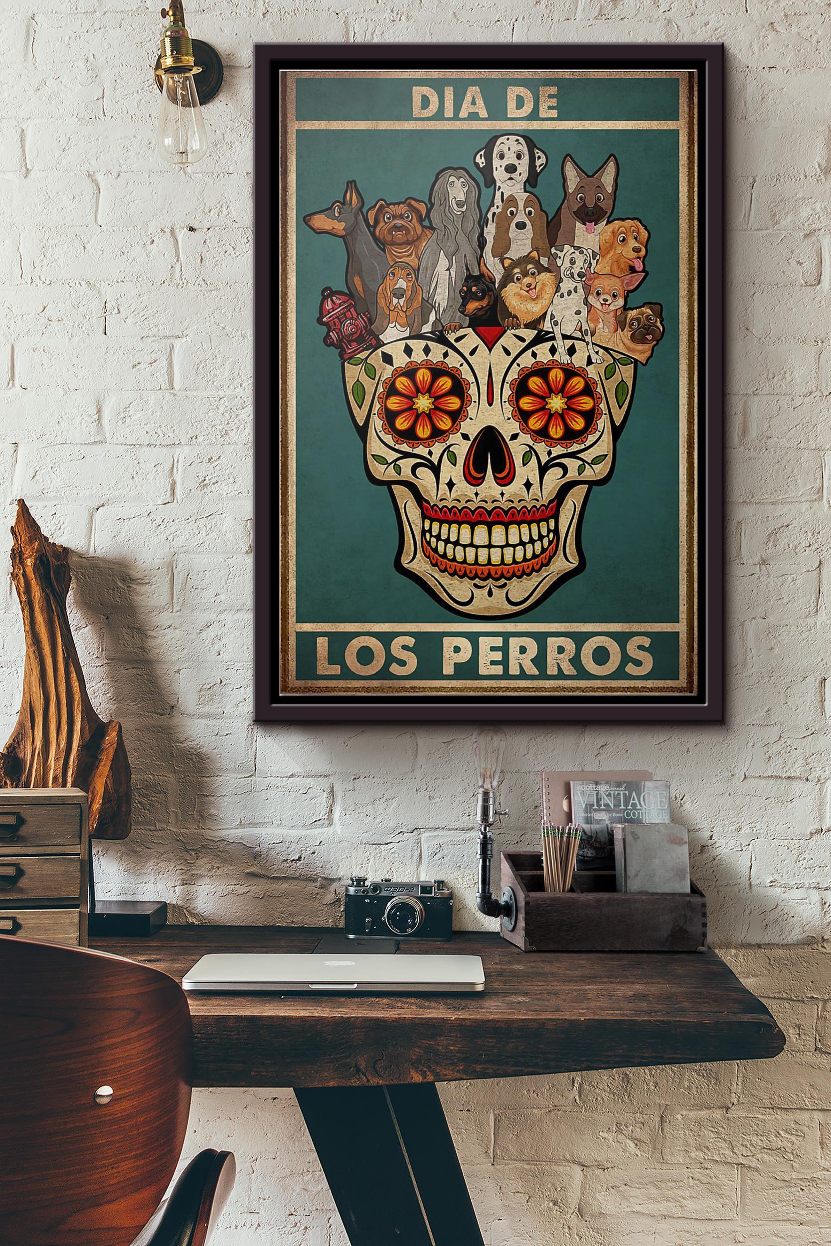 Sugar Skull Dog Dia De Los Perros Poster Framed Matte Canvas