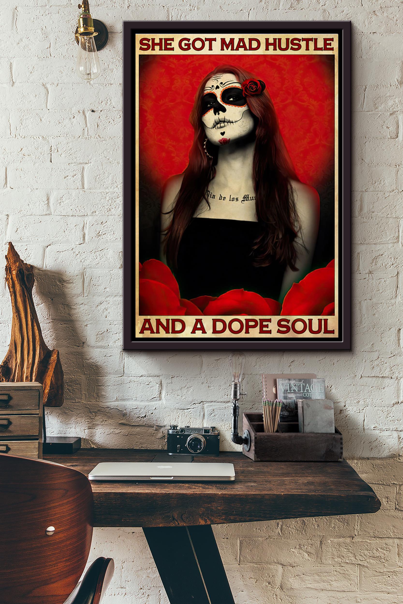 Sugar Skull Girl She Got Mad Hustle And A Dope Soul Poster Framed Matte Canvas