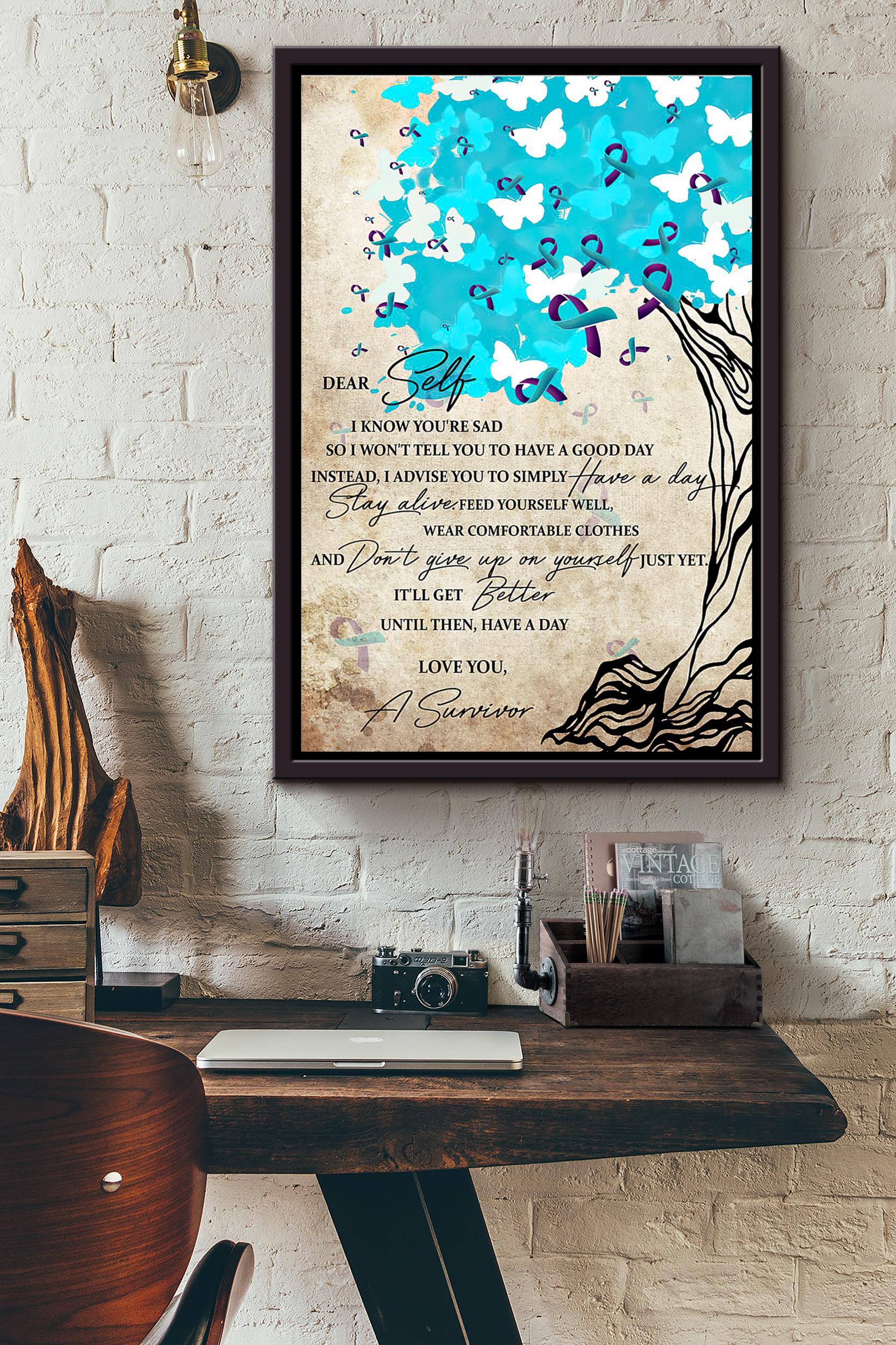 Suicide Prevention Awareness Dear Self I Know Youre Sad Have A Day Stay Alive Poster Framed Matte Canvas