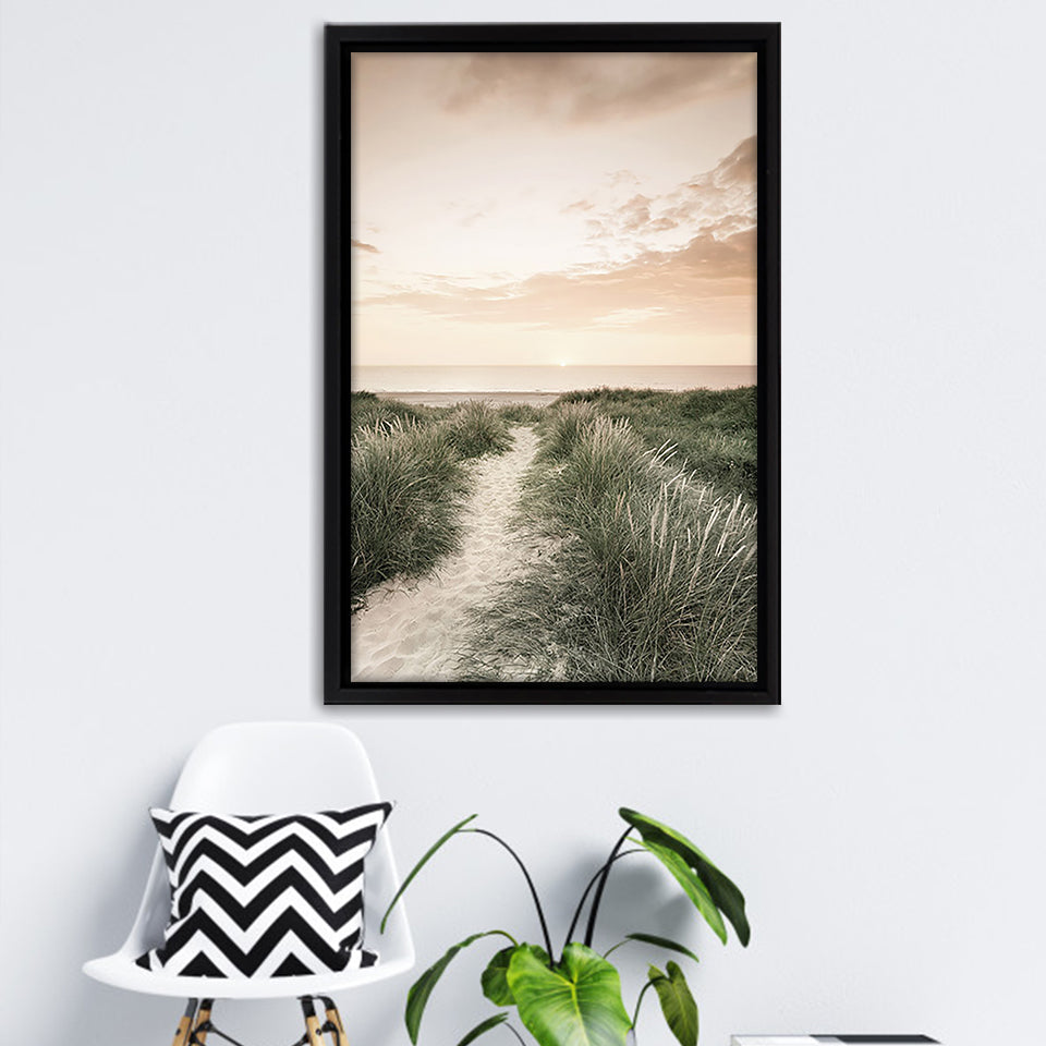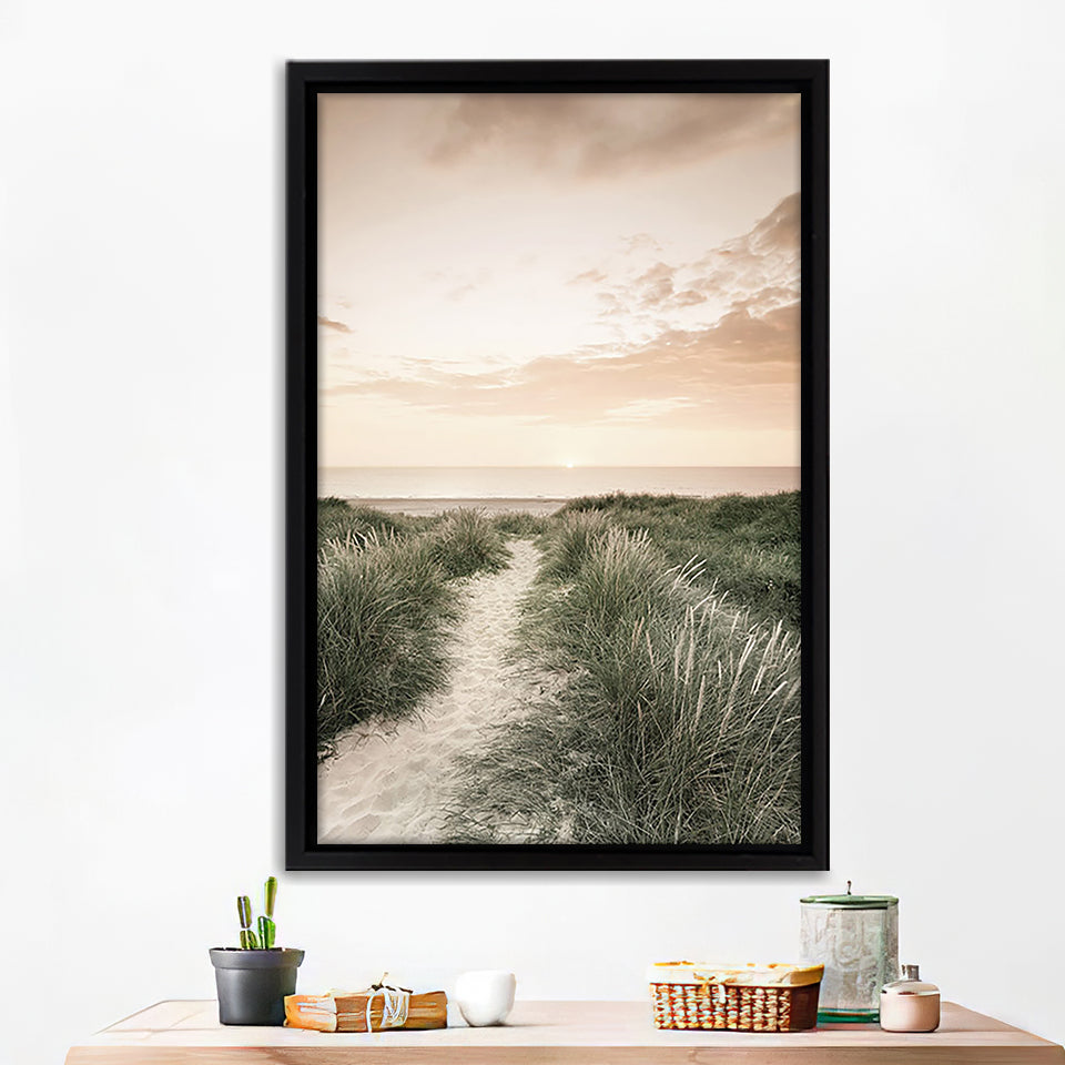 Sunrise Beach Walk Framed Canvas Print – Canvas Painting, Canvas Art, Wall Art, Wall Decor