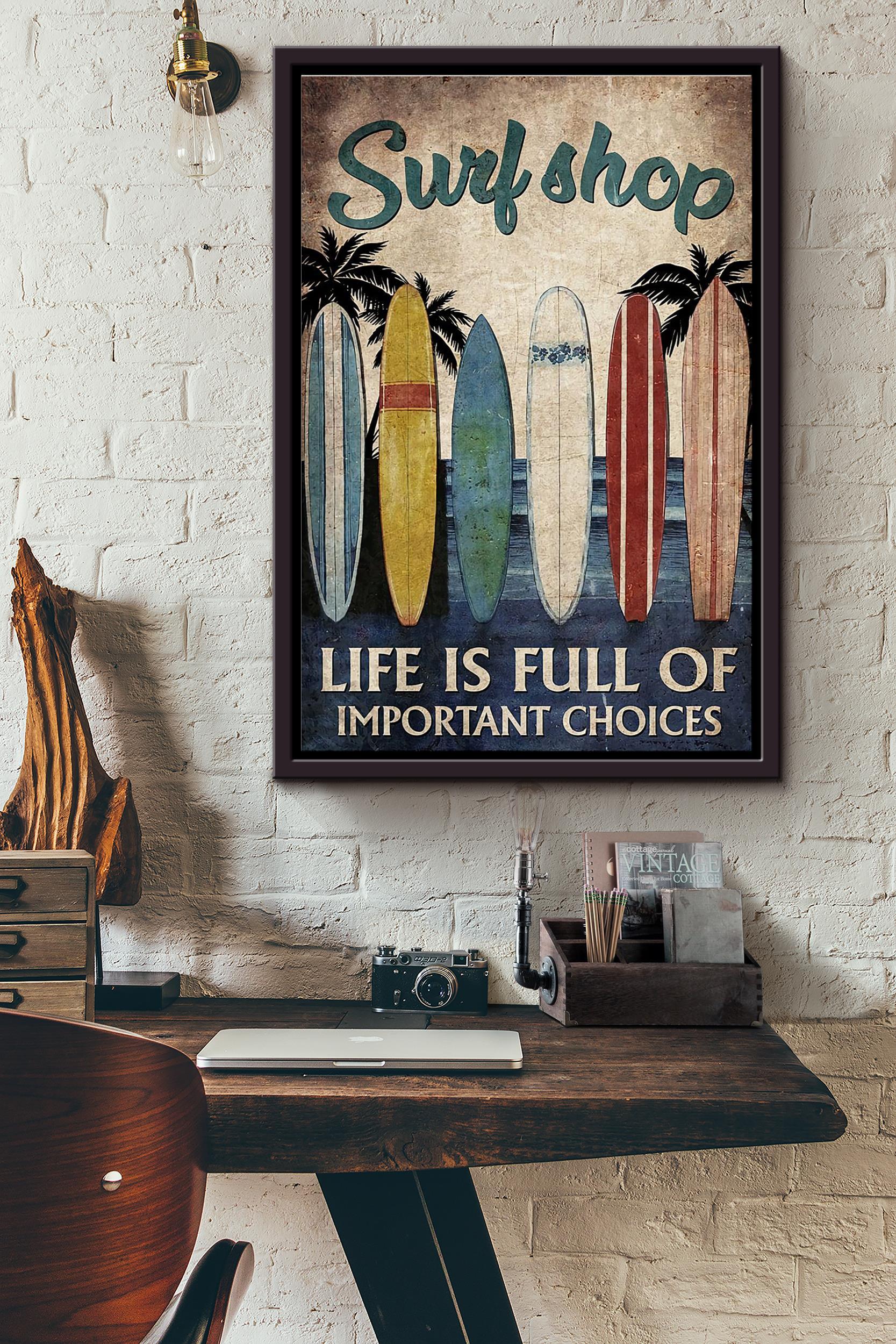 Surf Shop Life Is Full Of Important Choices Poster Framed Matte Canvas