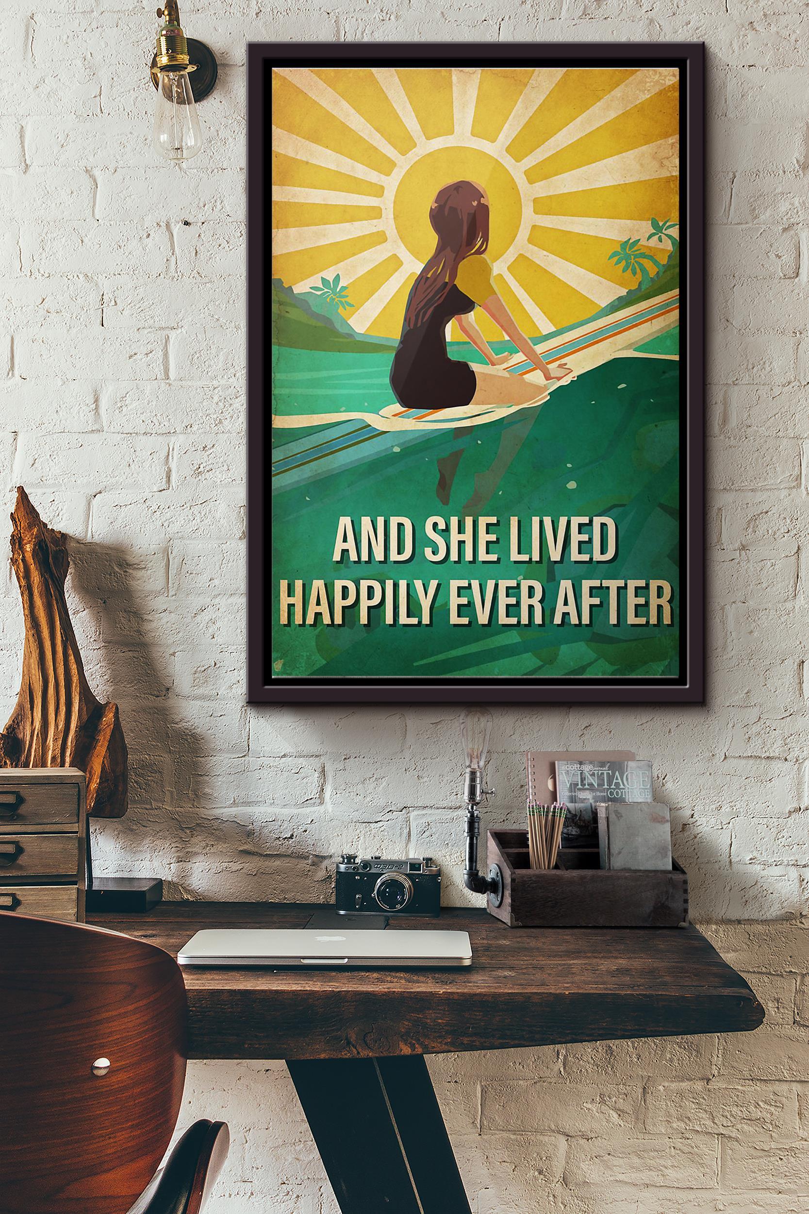 Surfing And She Lived Happily Ever After Poster Framed Matte Canvas