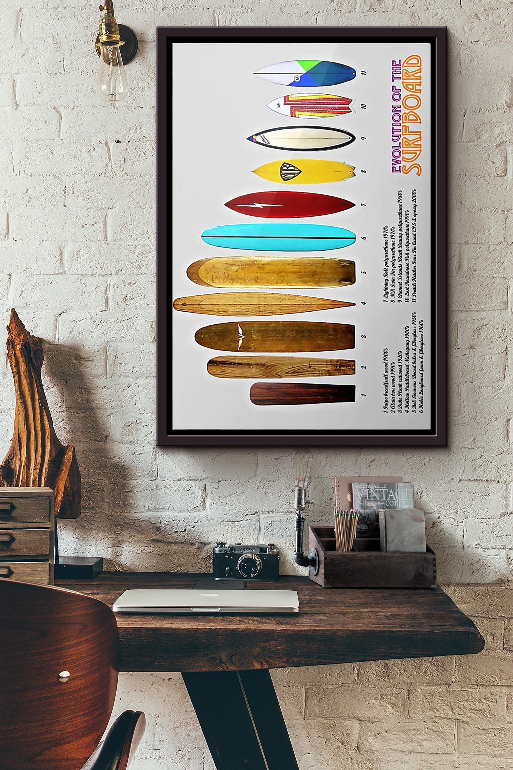 Surfing Evolution Of The Surfboard Poster Framed Matte Canvas