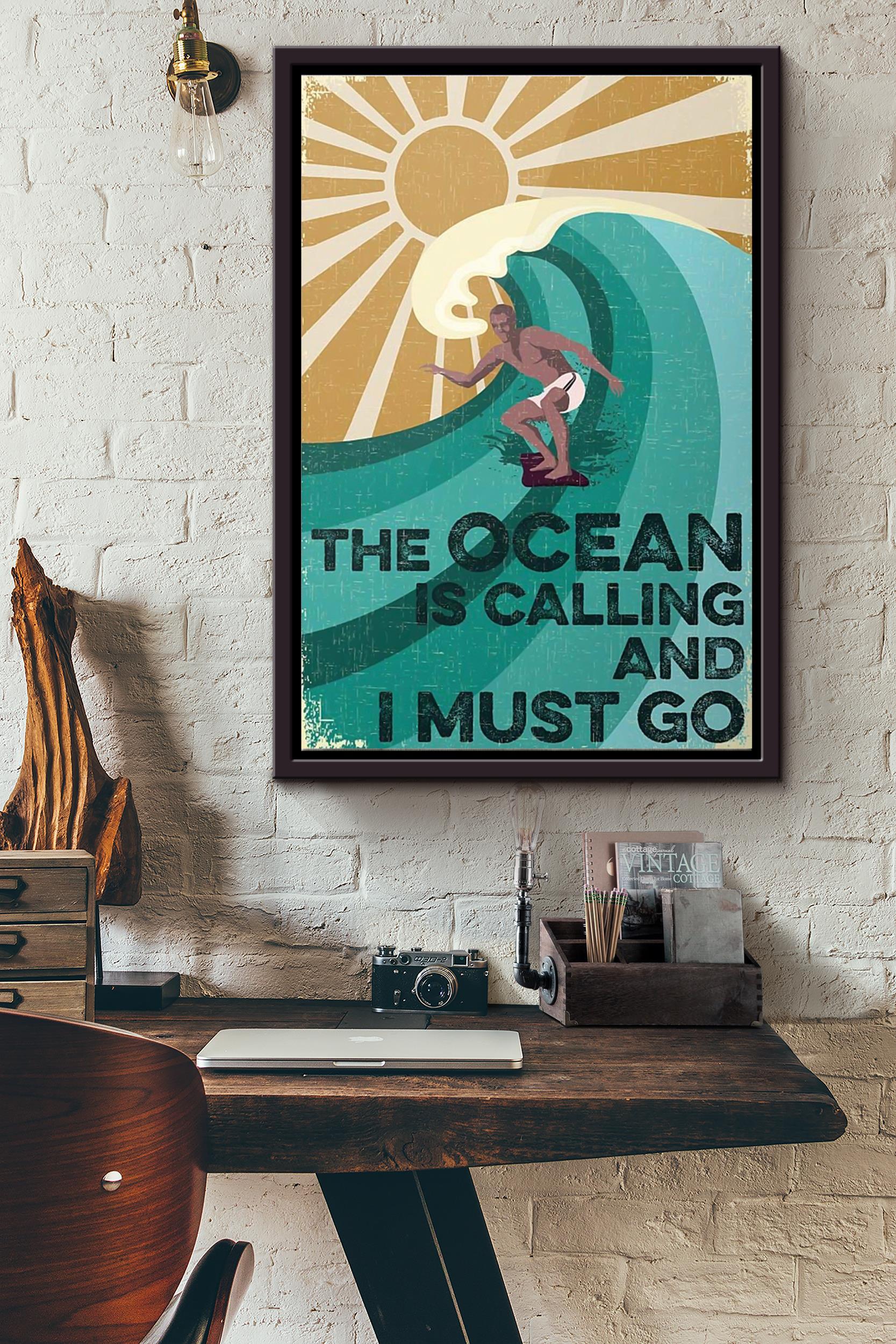 Surfing The Ocean Is Calling And I Must Go Poster Framed Matte Canvas