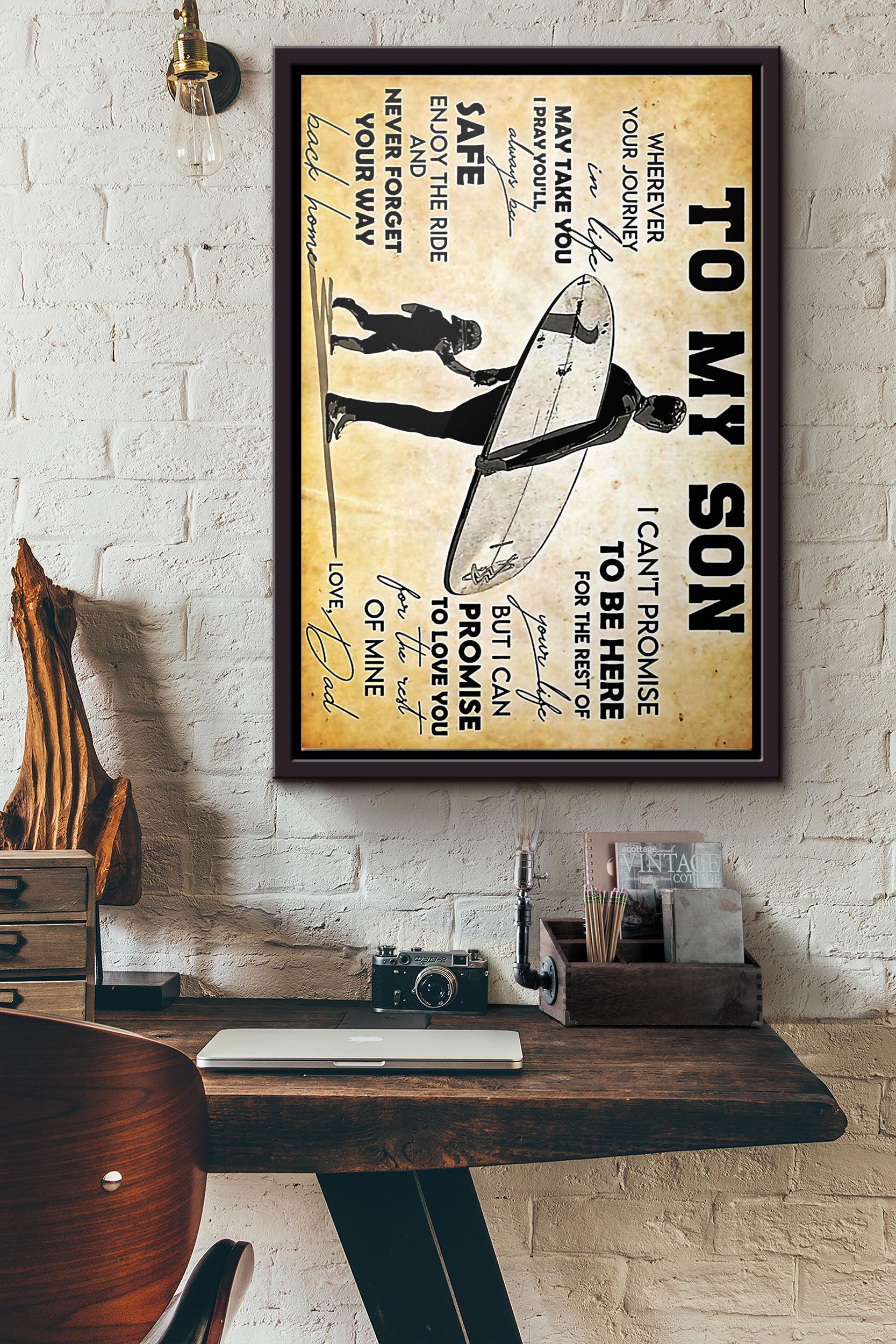 Surfing To My Son Love Dad Poster Framed Matte Canvas
