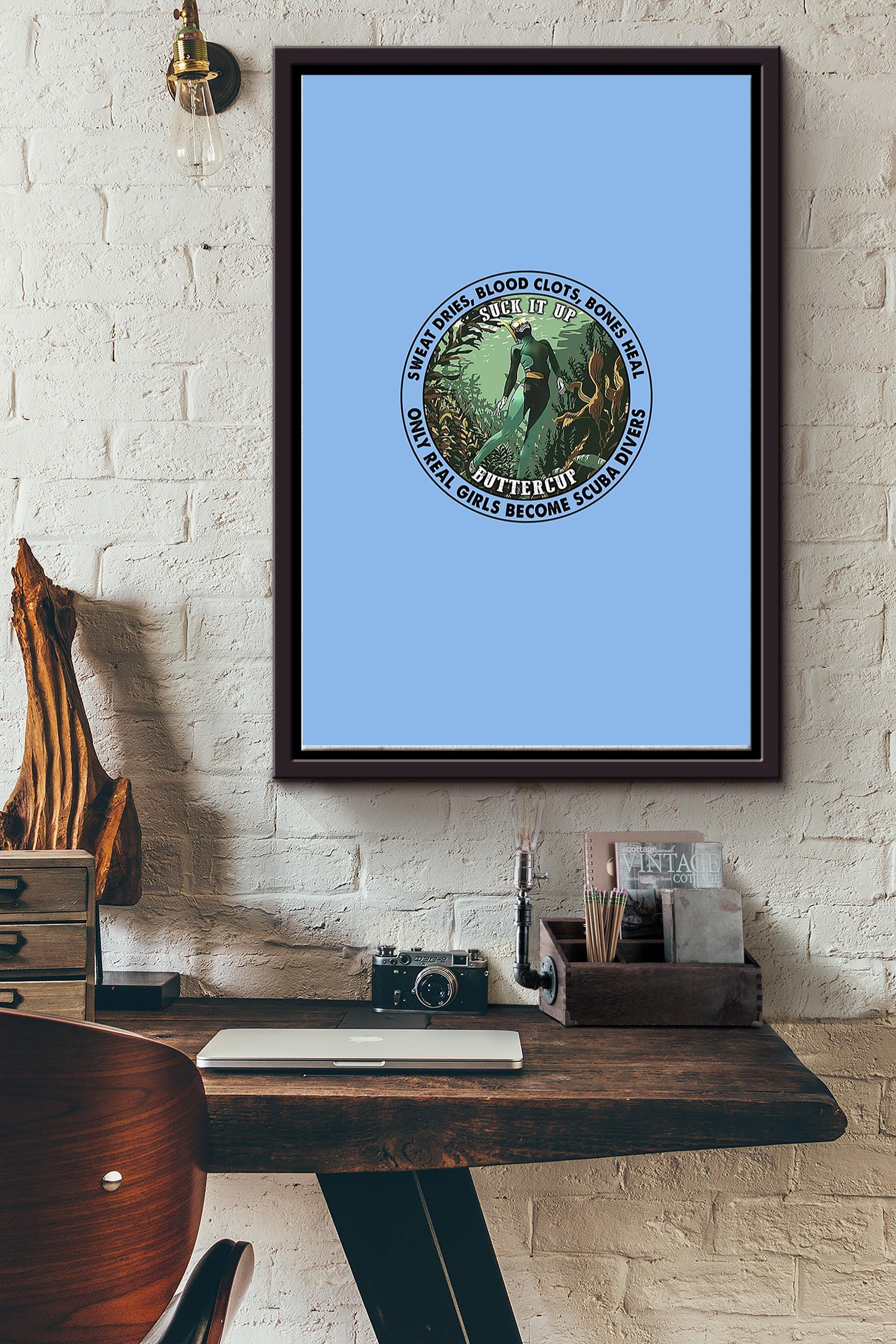 Sweat Dries Blood Clots Bones Heal Only Real Girls Become Scuba Divers Suck It Up Buttercup Scuba Diving Girl Poster Framed Matte Canvas