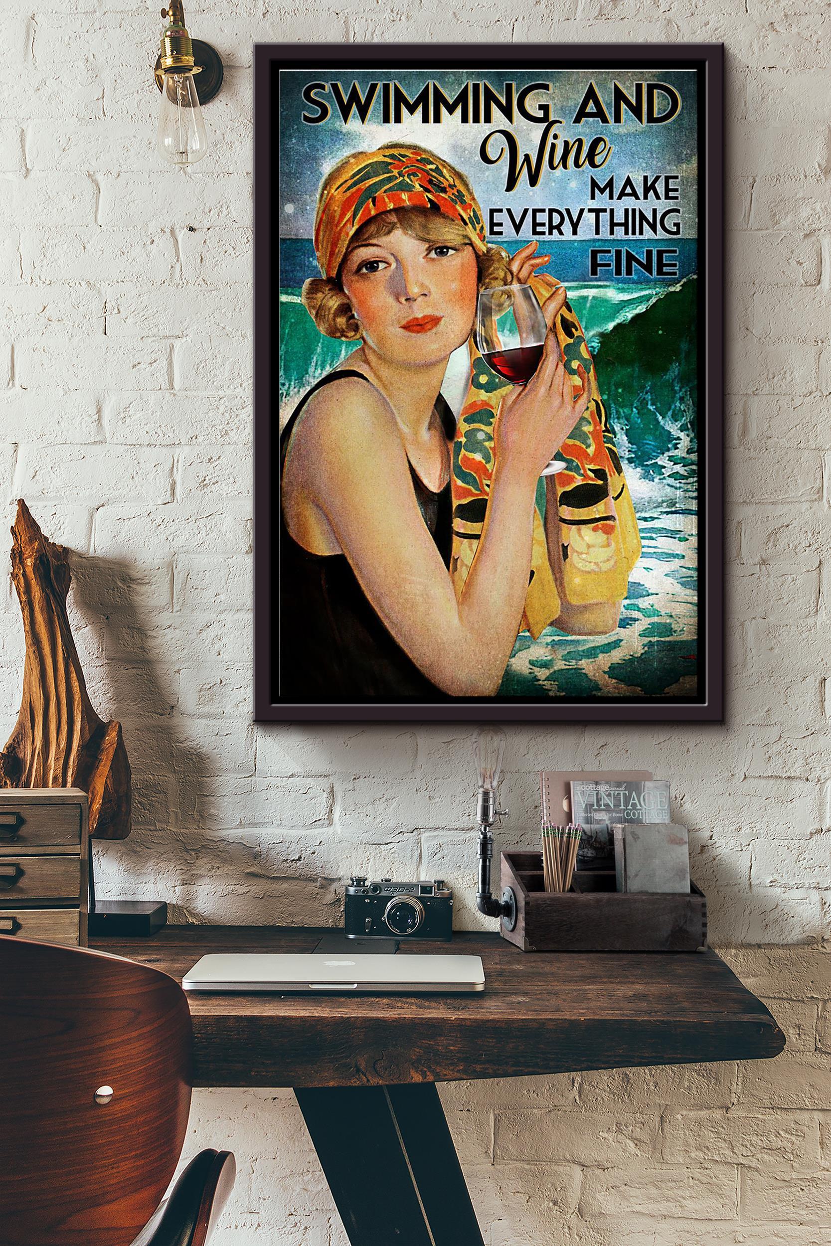 Swimming And Wine Make Everything Fine Poster Framed Matte Canvas