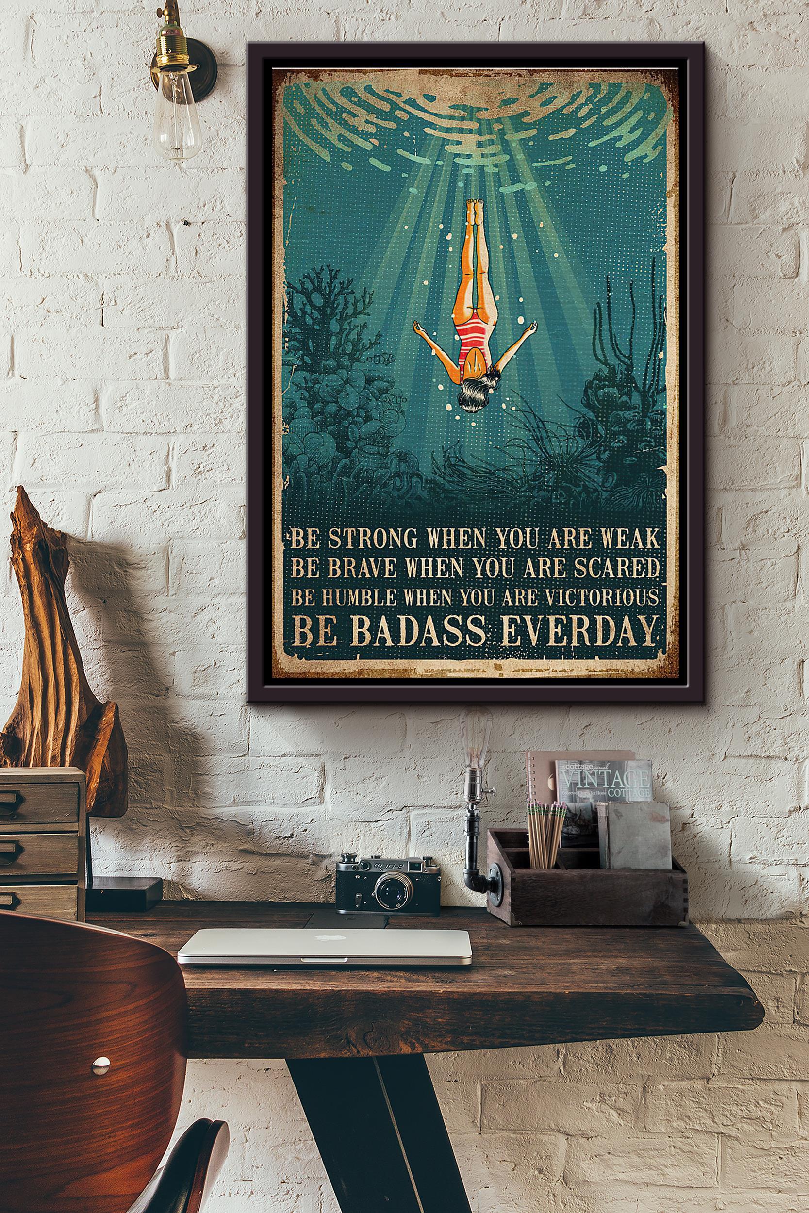 Swimming Be Strong When You Are Weak Poster Framed Matte Canvas