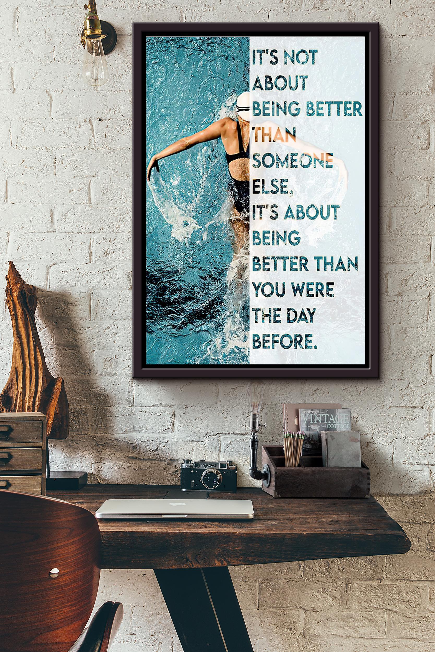 Swimming Girl Its About Being Better Than You Were The Day Before Poster Framed Matte Canvas