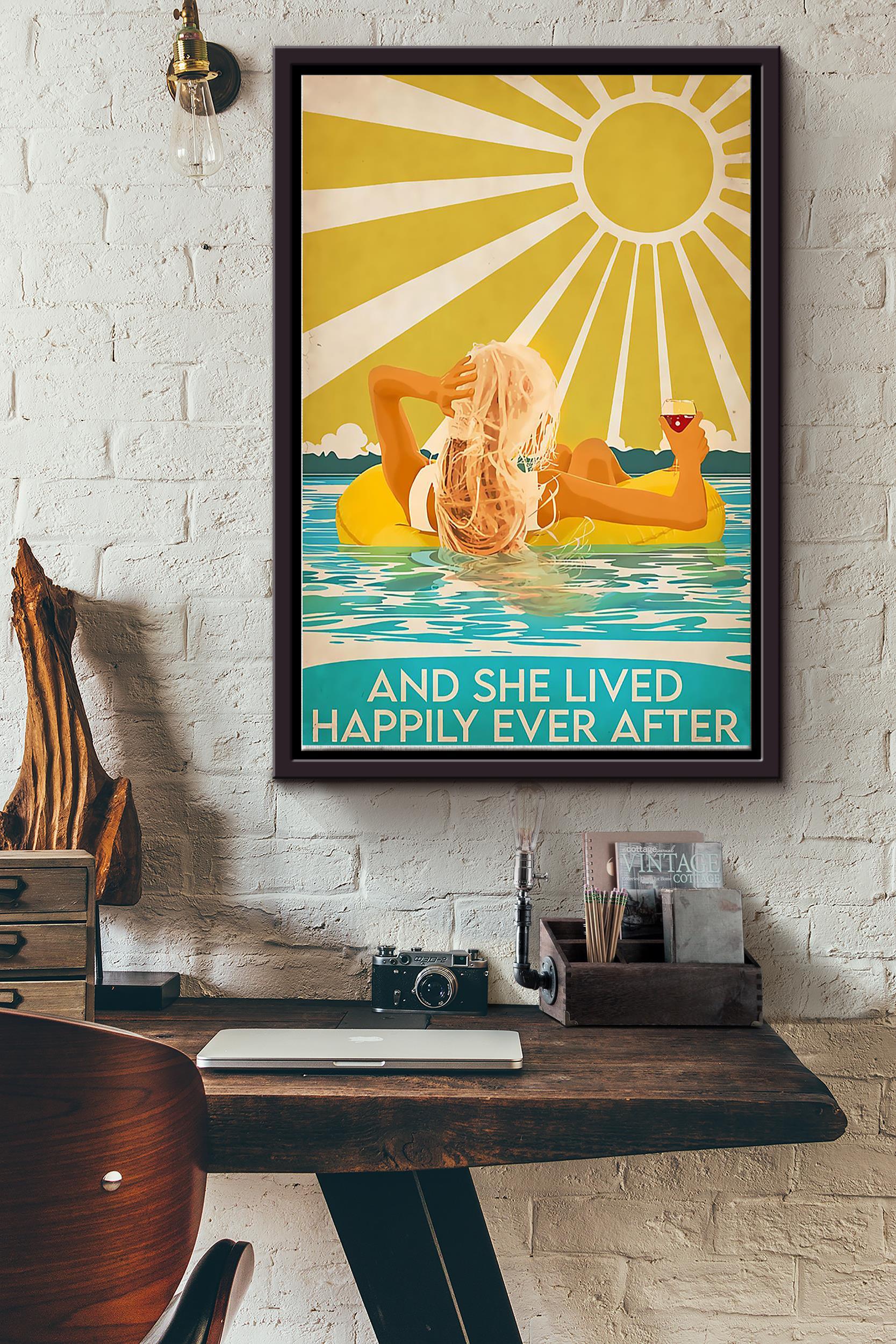 Swimming Girl She Lived Happily Ever After Vintage Poster Framed Matte Canvas