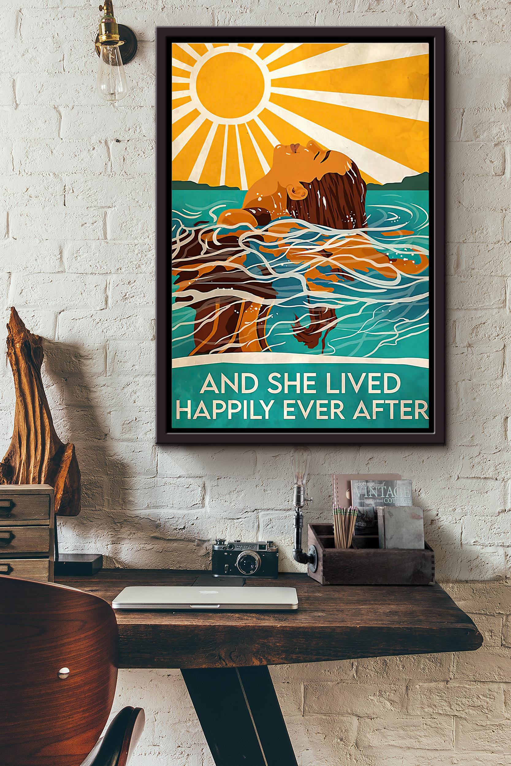Swimming Sunburst And She Lived Happily Ever After Poster Framed Matte Canvas