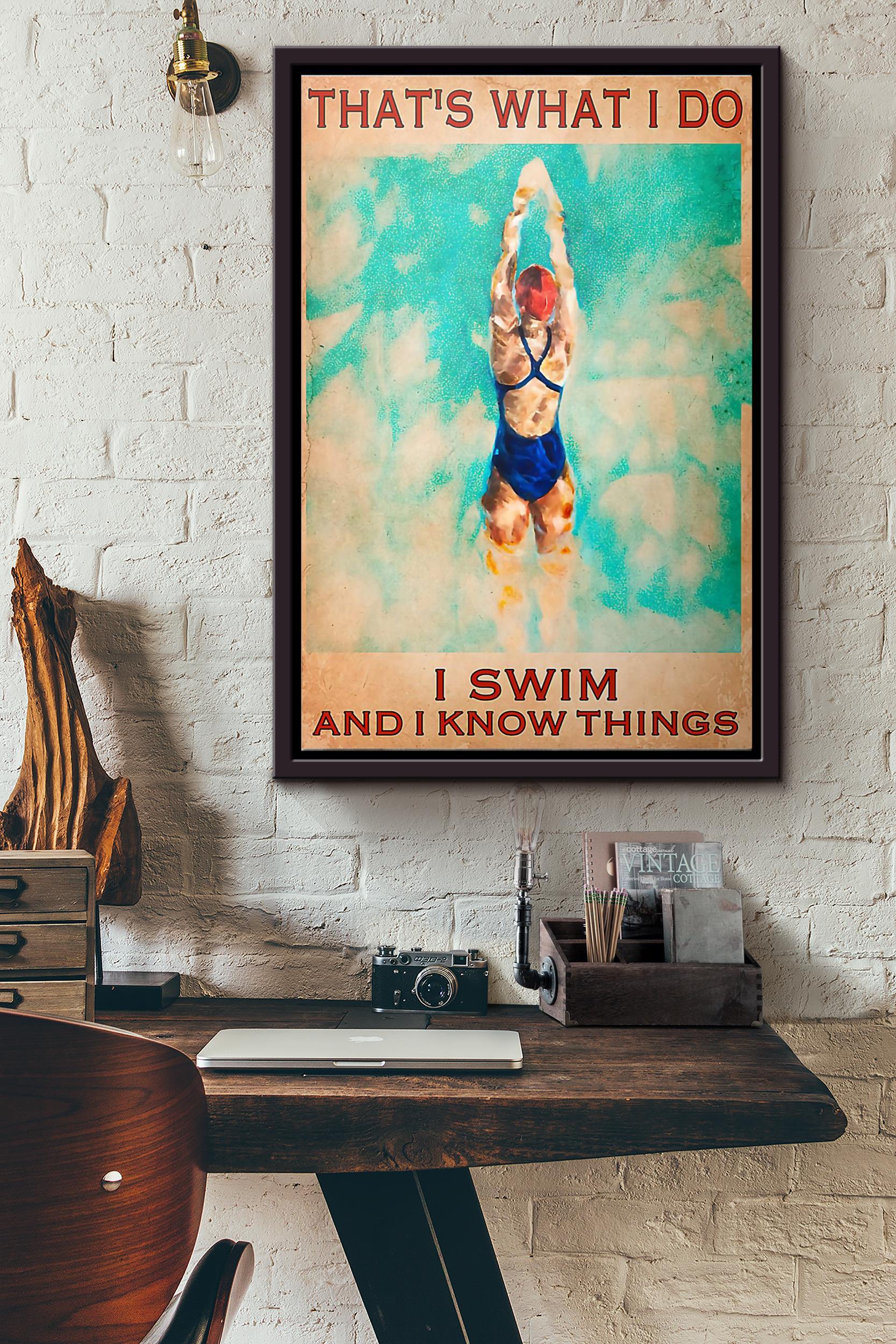 Swimming Thats What I Do I Swim And I Know Things Poster Framed Matte Canvas