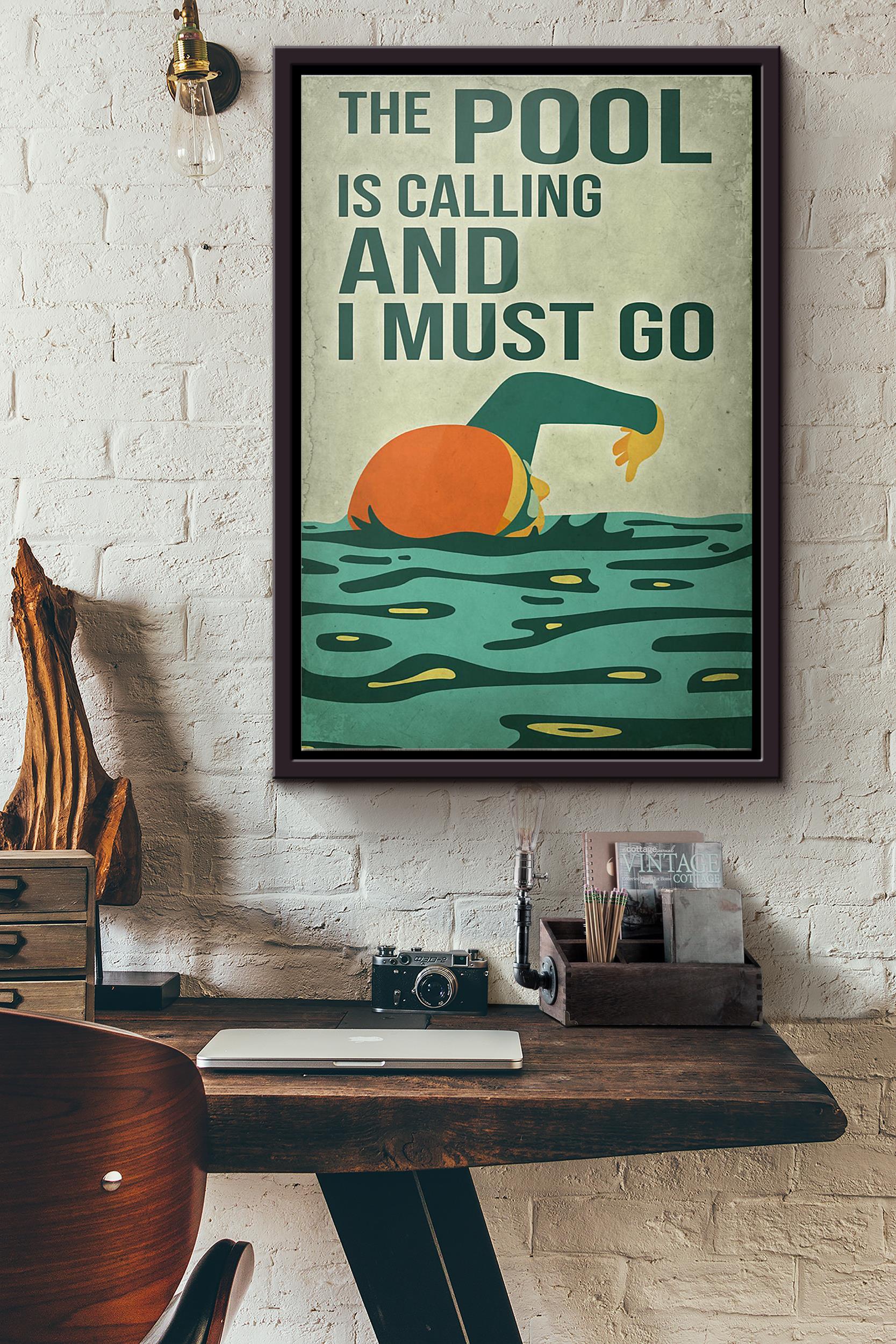 Swimming The Pool Is Calling And I Must Go Poster Framed Matte Canvas