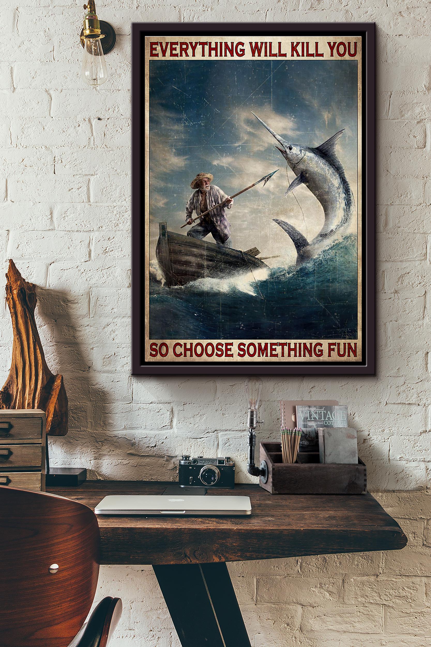 Swordfish Hunt Everything Will Kill You So Choose Something Fun Poster Framed Matte Canvas