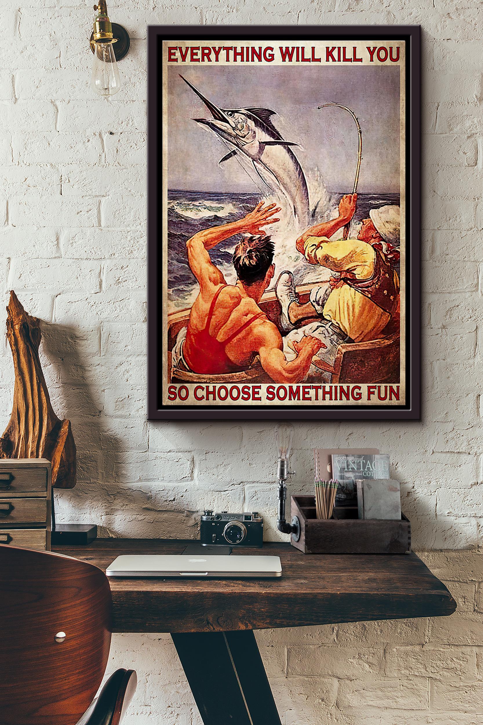Swordfish Ocean Everything Will Kill You Poster Framed Matte Canvas