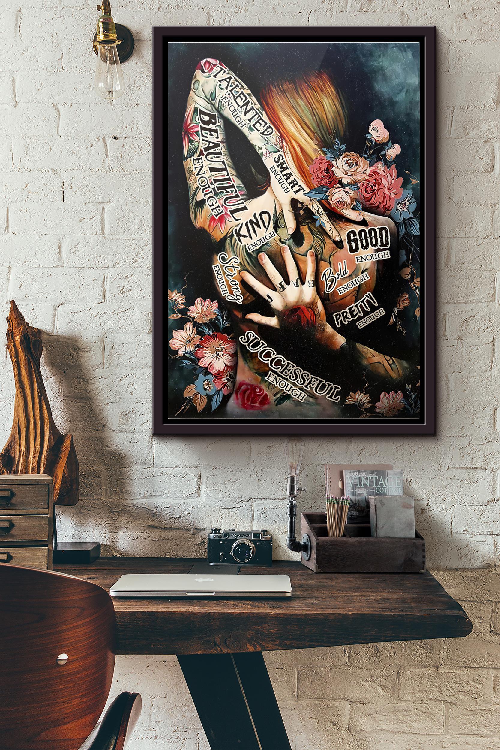 Tattoo Girl I Am Enough Kind Strong Smart Successful Talented Good Enough Poster Framed Matte Canvas