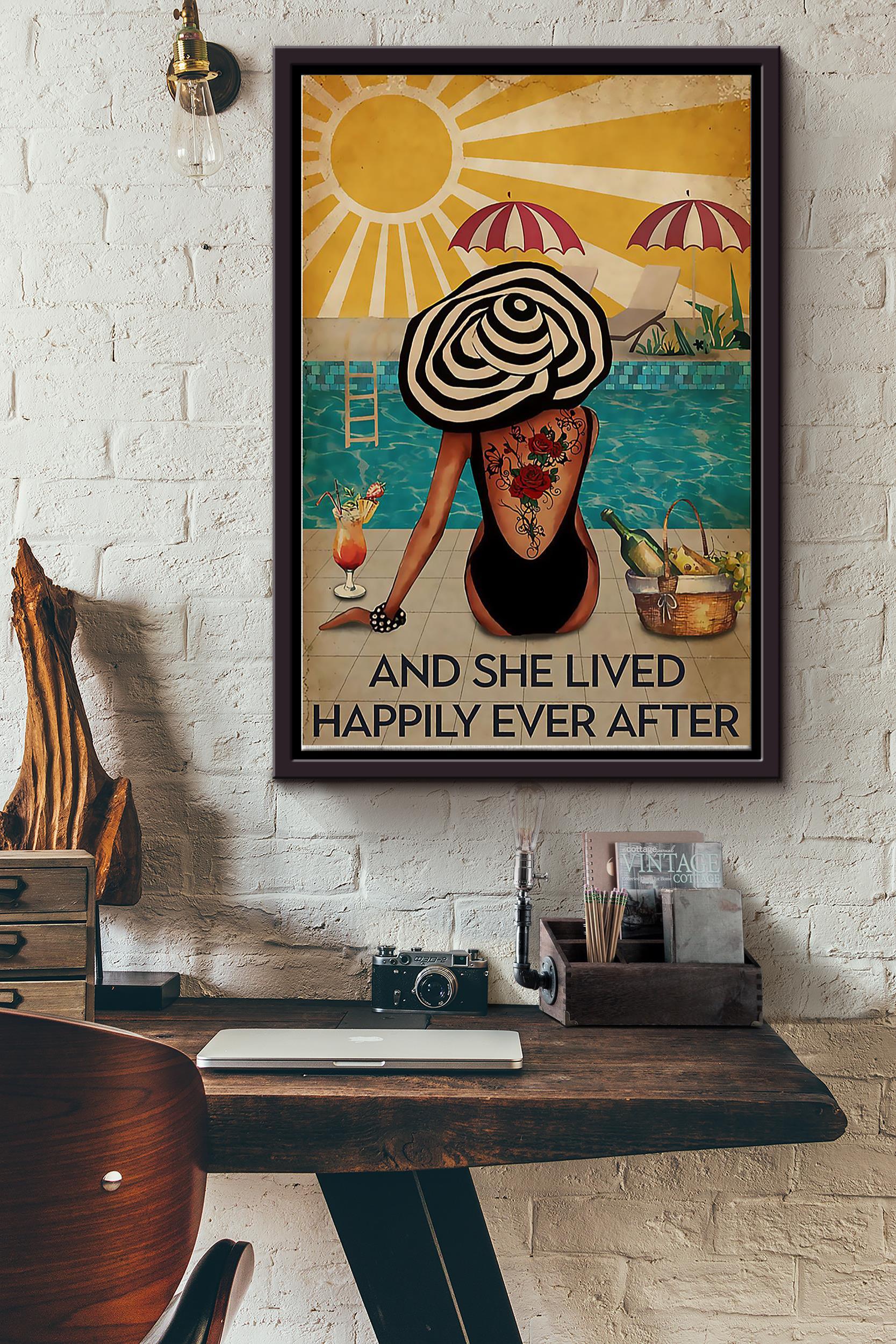 Tattoo Girl On The Beach She Lived Happily Ever After Vintage Poster Framed Matte Canvas