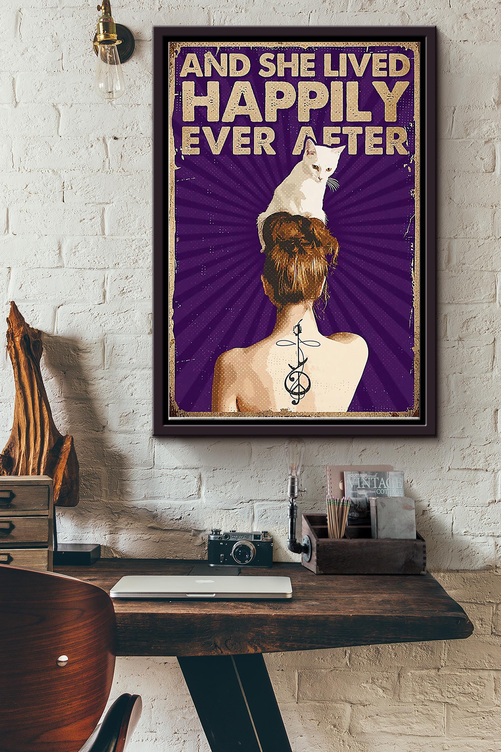 Tattoo Girl With White Cat She Lived Happily Ever After Poster Framed Matte Canvas
