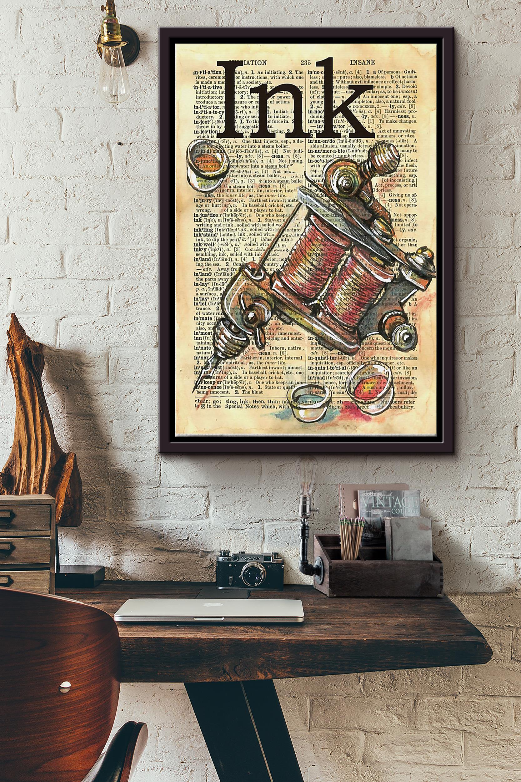 Tattoo Gun Ink Vintage Poster Framed Matte Canvas