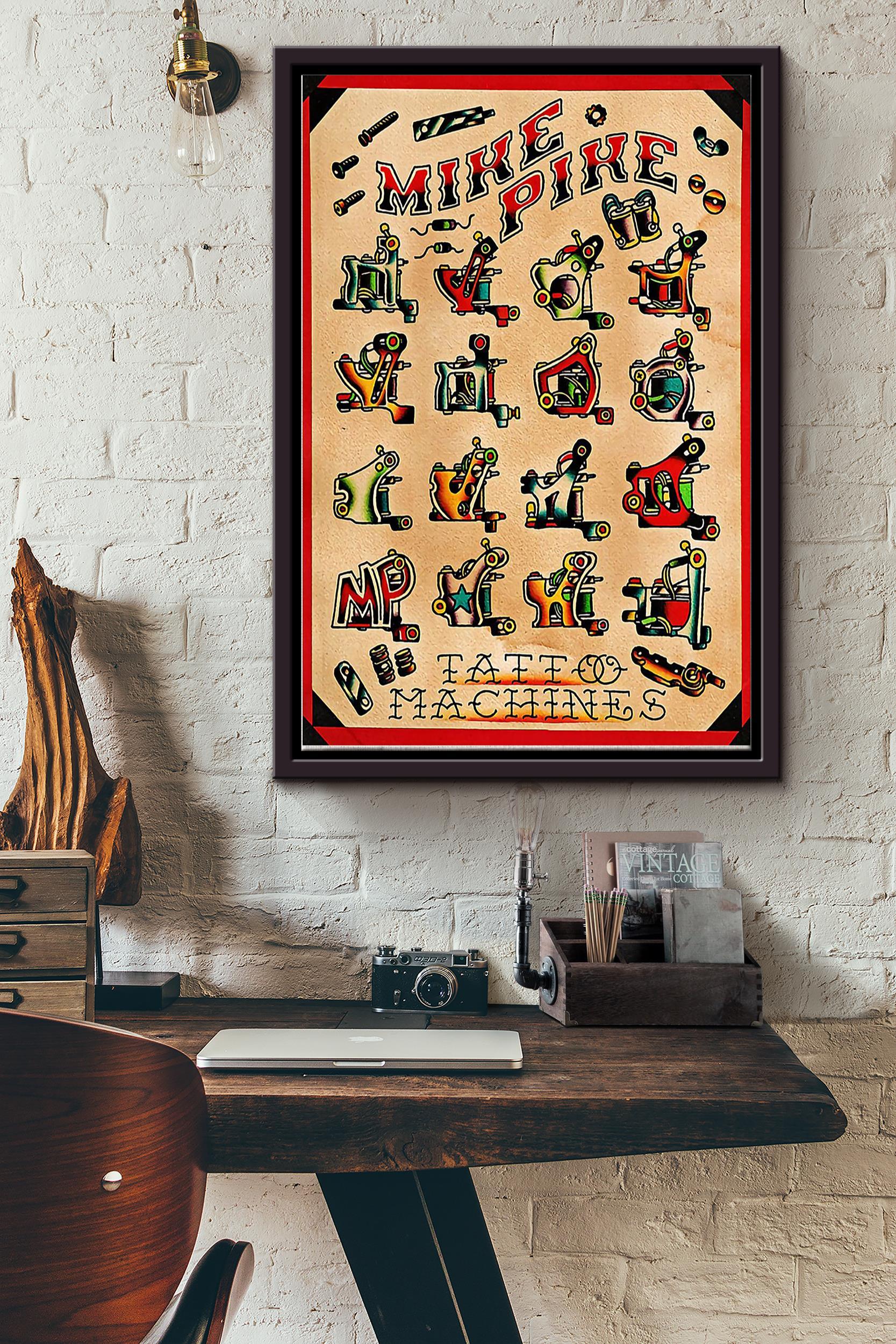 Tattoo Machines Color Drawing Poster Framed Matte Canvas