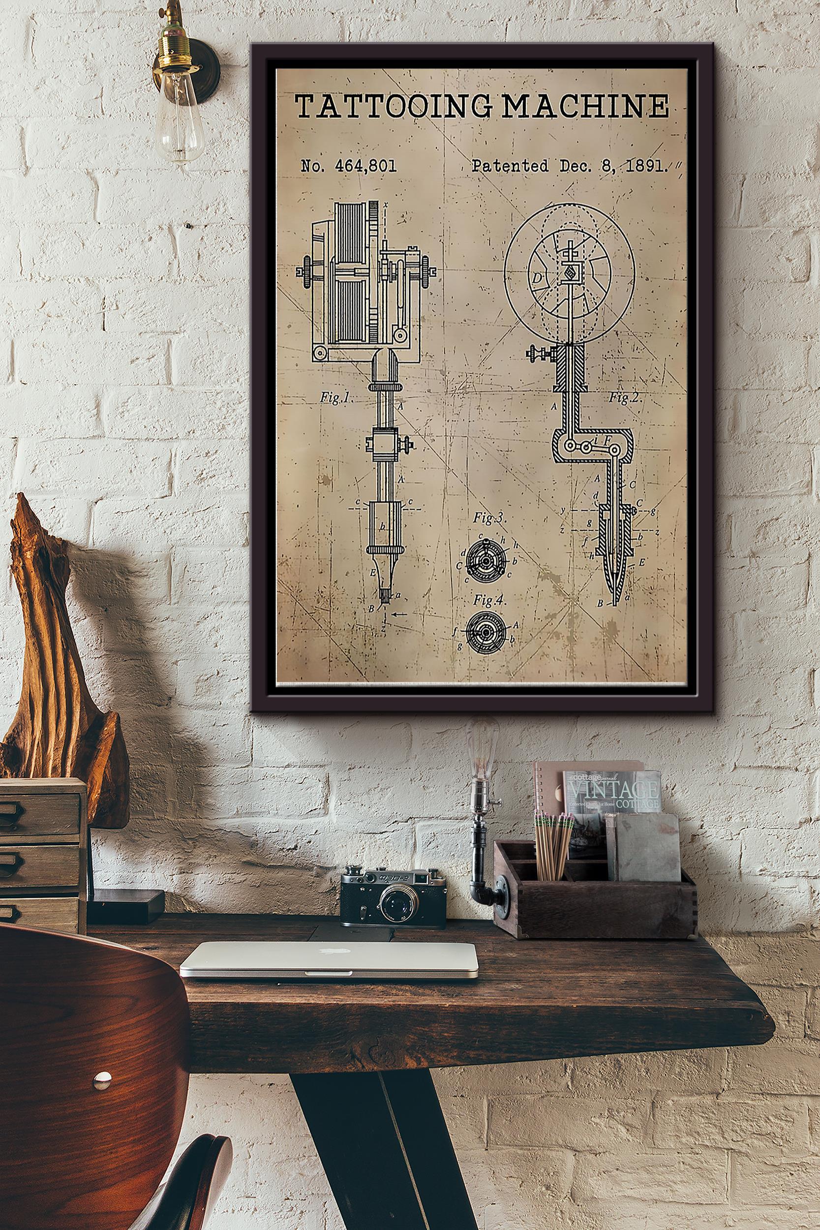 Tattooing Machine Hand Drawing Tattoo Poster Framed Matte Canvas