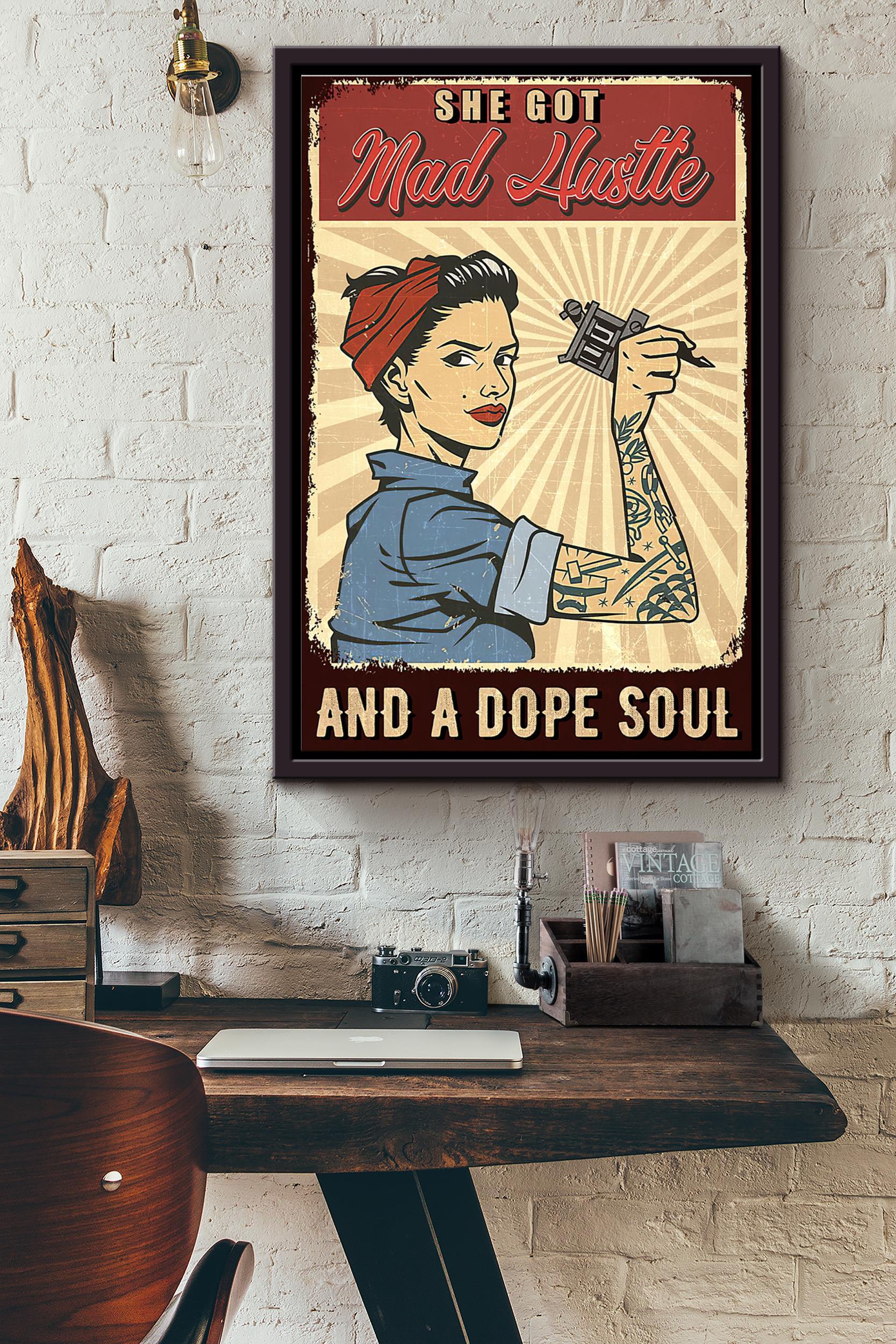 Tattooist Girt She Got Mad Hustle And A Dope Soul Poster Framed Matte Canvas