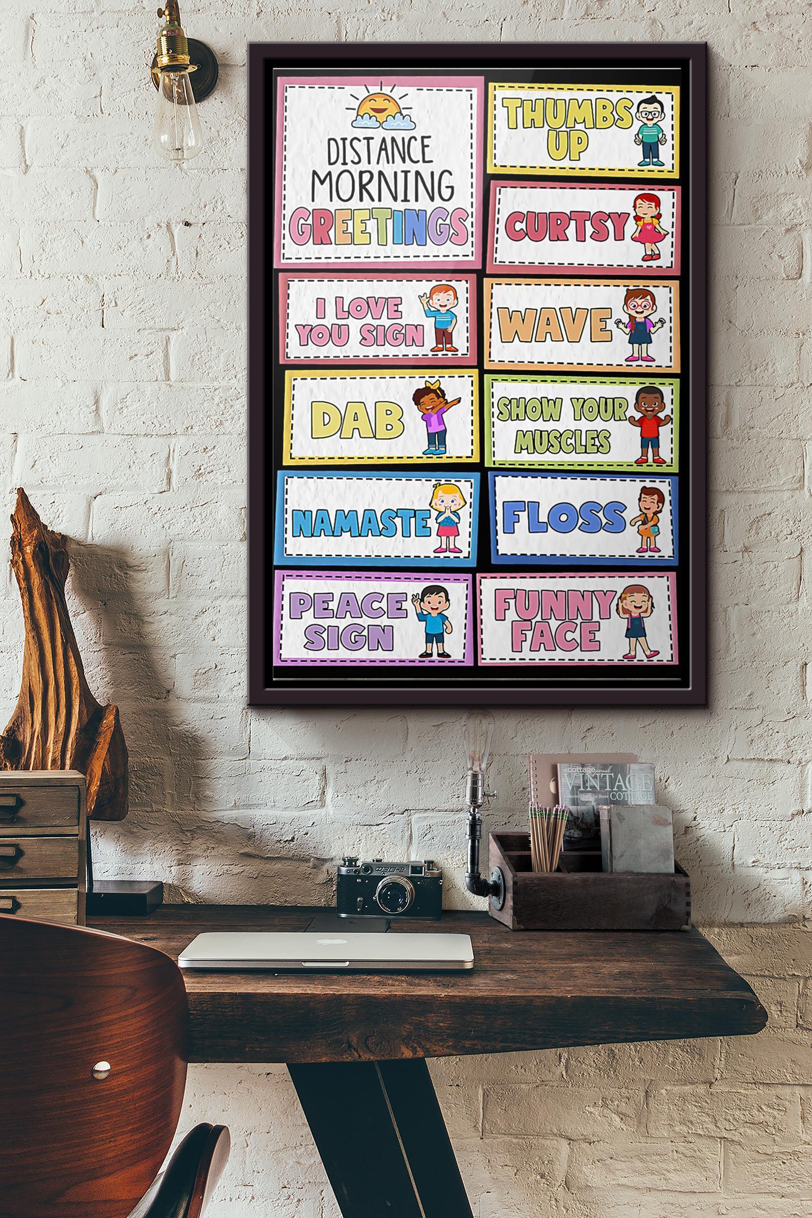 Teacher Distance Morning Greetings Poster Framed Matte Canvas