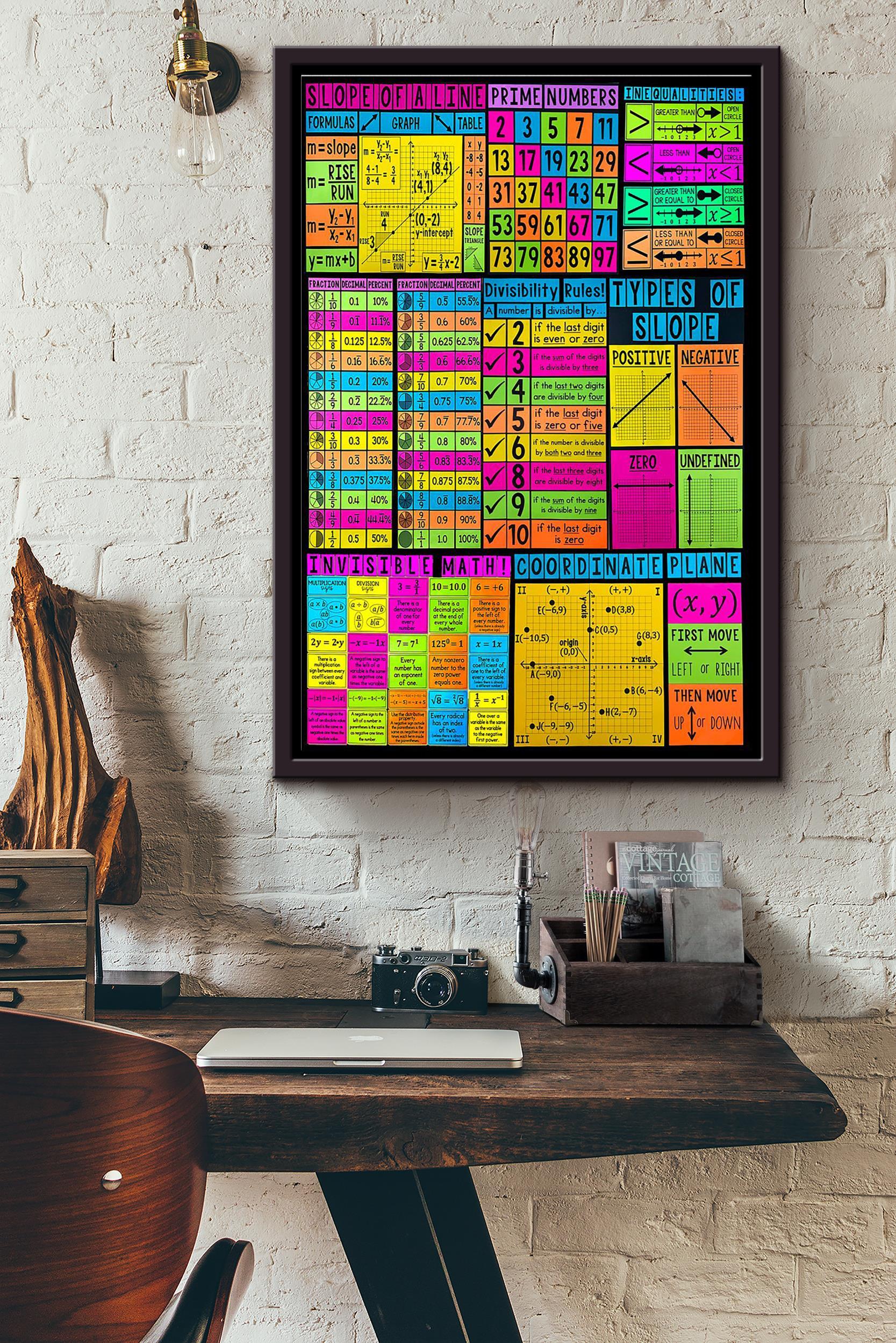 Teacher Math Poster Framed Matte Canvas