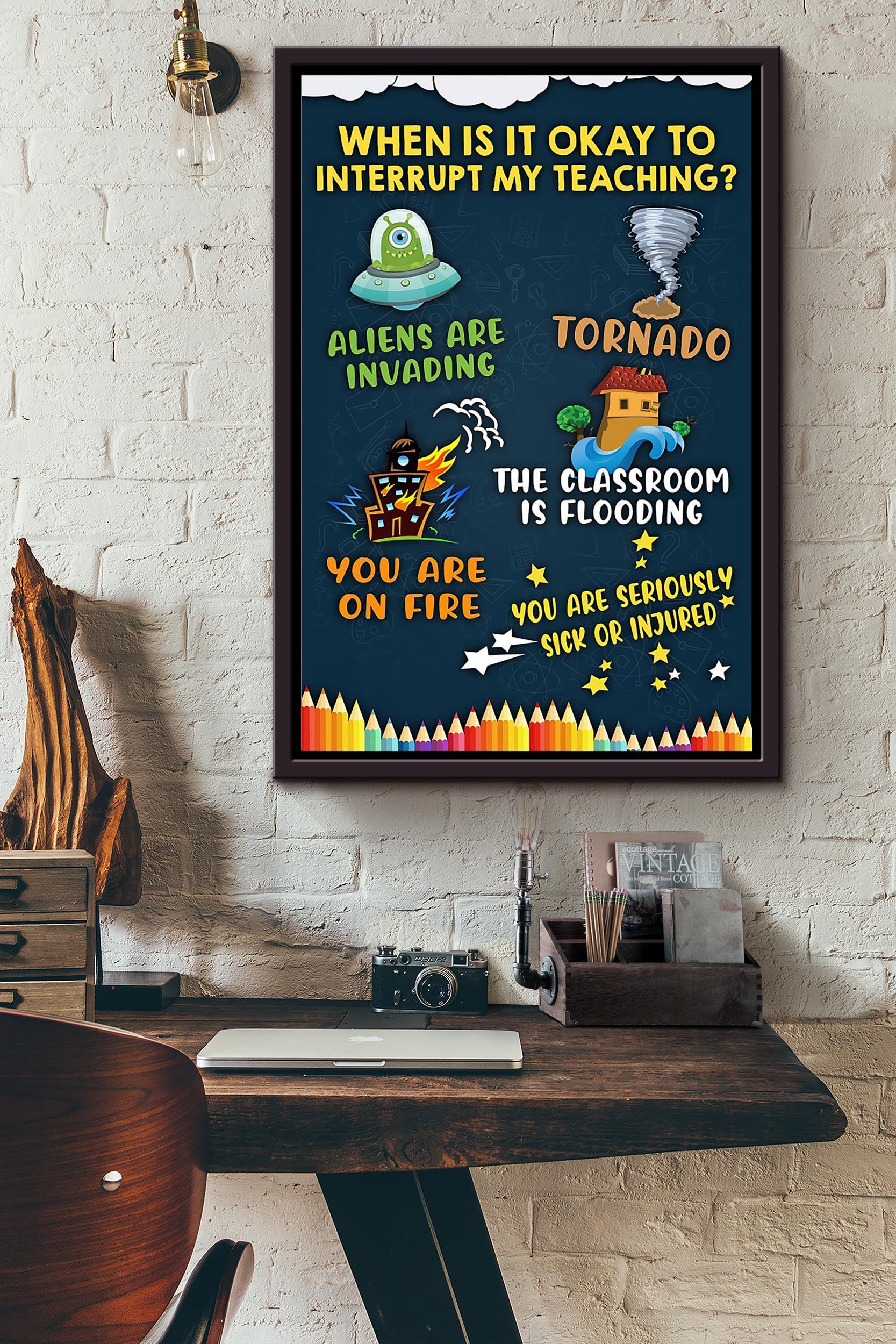 Teacher When Is It Okay To Interrupt My Teaching Poster Framed Matte Canvas