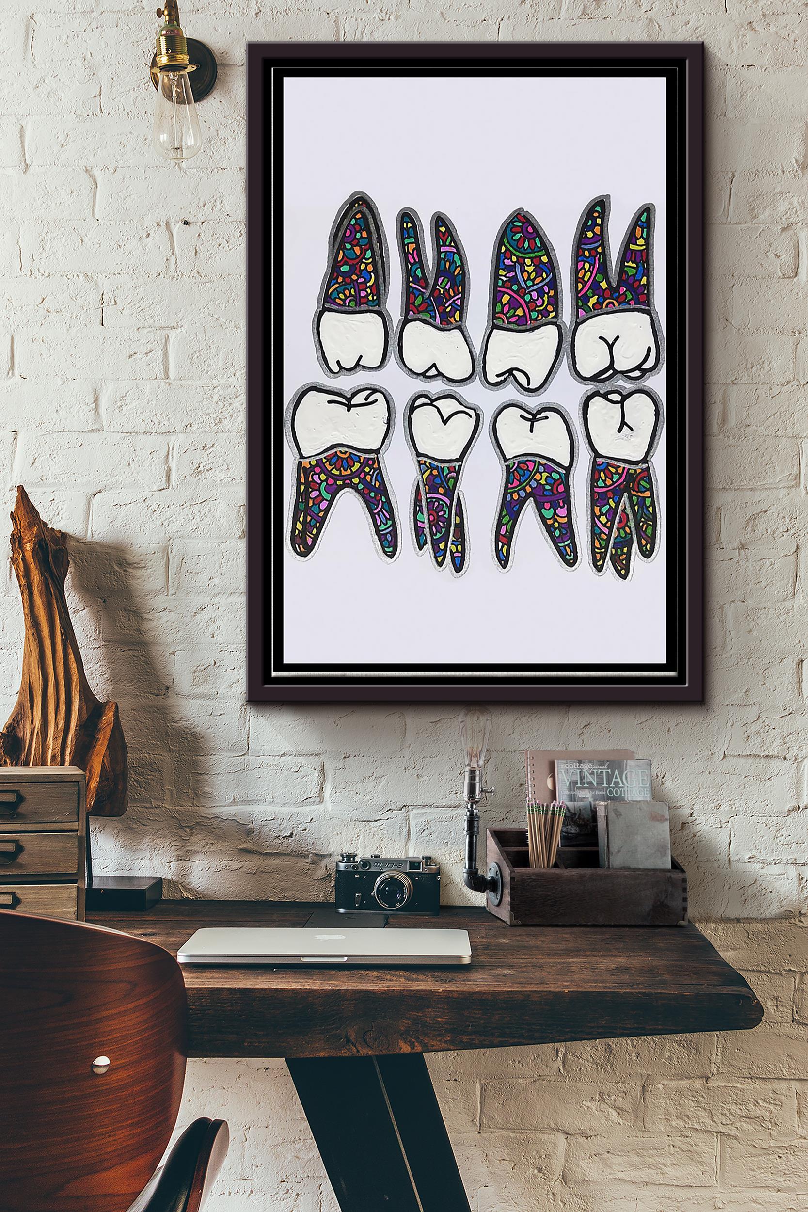 Teeth Pattern Dentist Colorful Poster Framed Matte Canvas