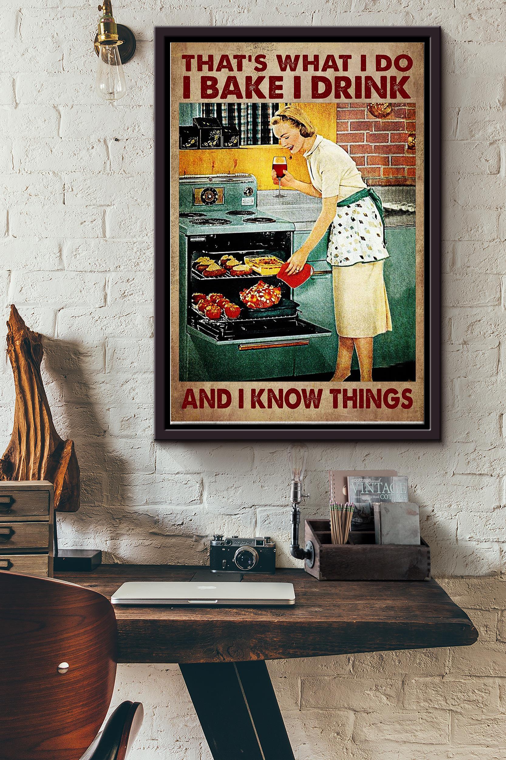 Thats What I Do I Bake I Drink Red Wine And I Know Things Baking Girl Poster Framed Matte Canvas