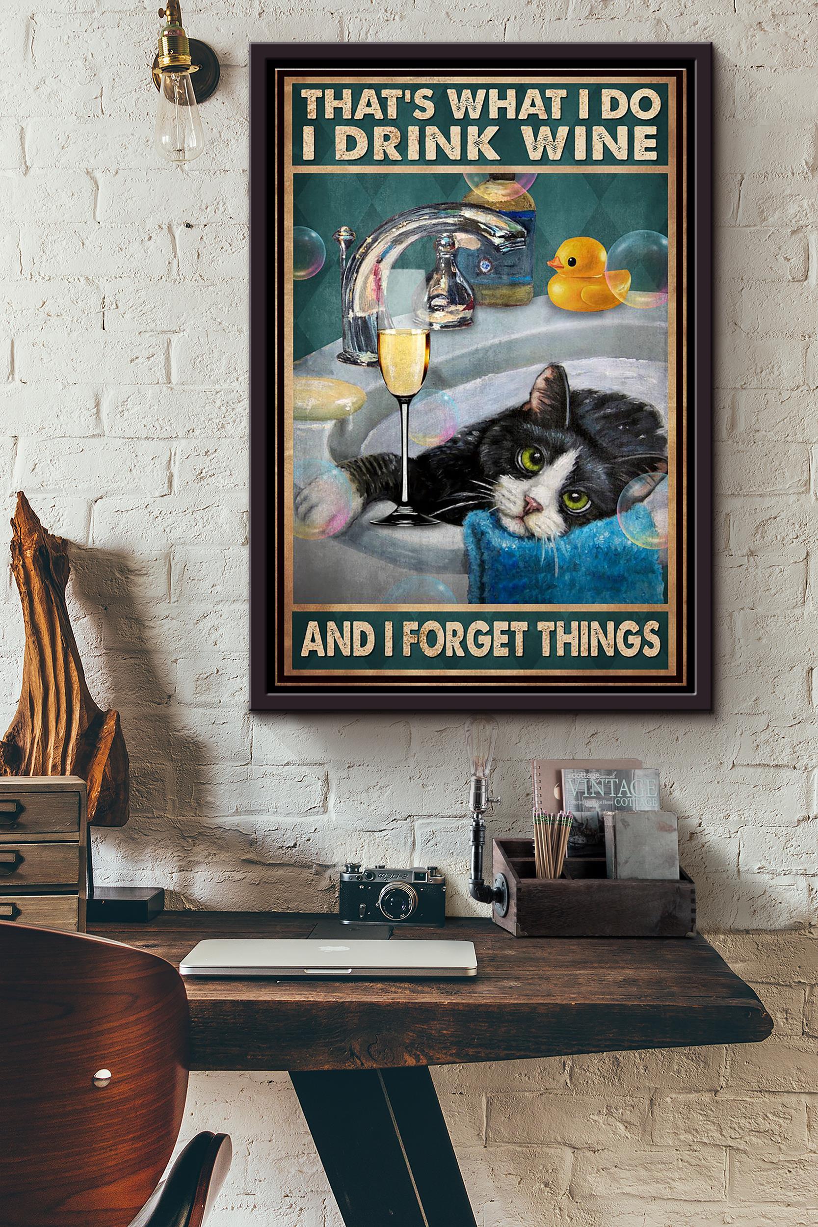 Thats What I Do I Drink White Wine And I Forget Things Black Cat Taking Shower Poster Framed Matte Canvas
