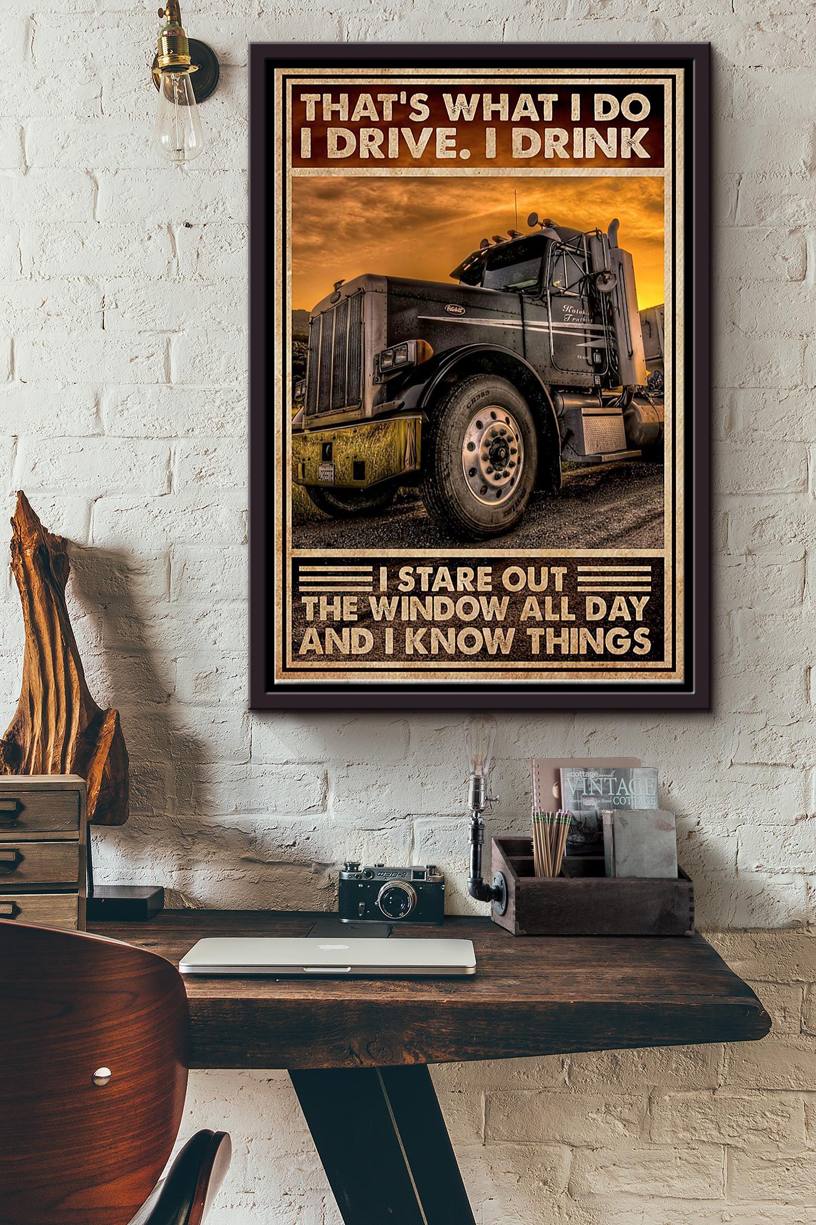 Thats What I Do I Drive Truck I Drink And I Stare Out The Window All Day And I Know Things Trucker Poster Framed Matte Canvas