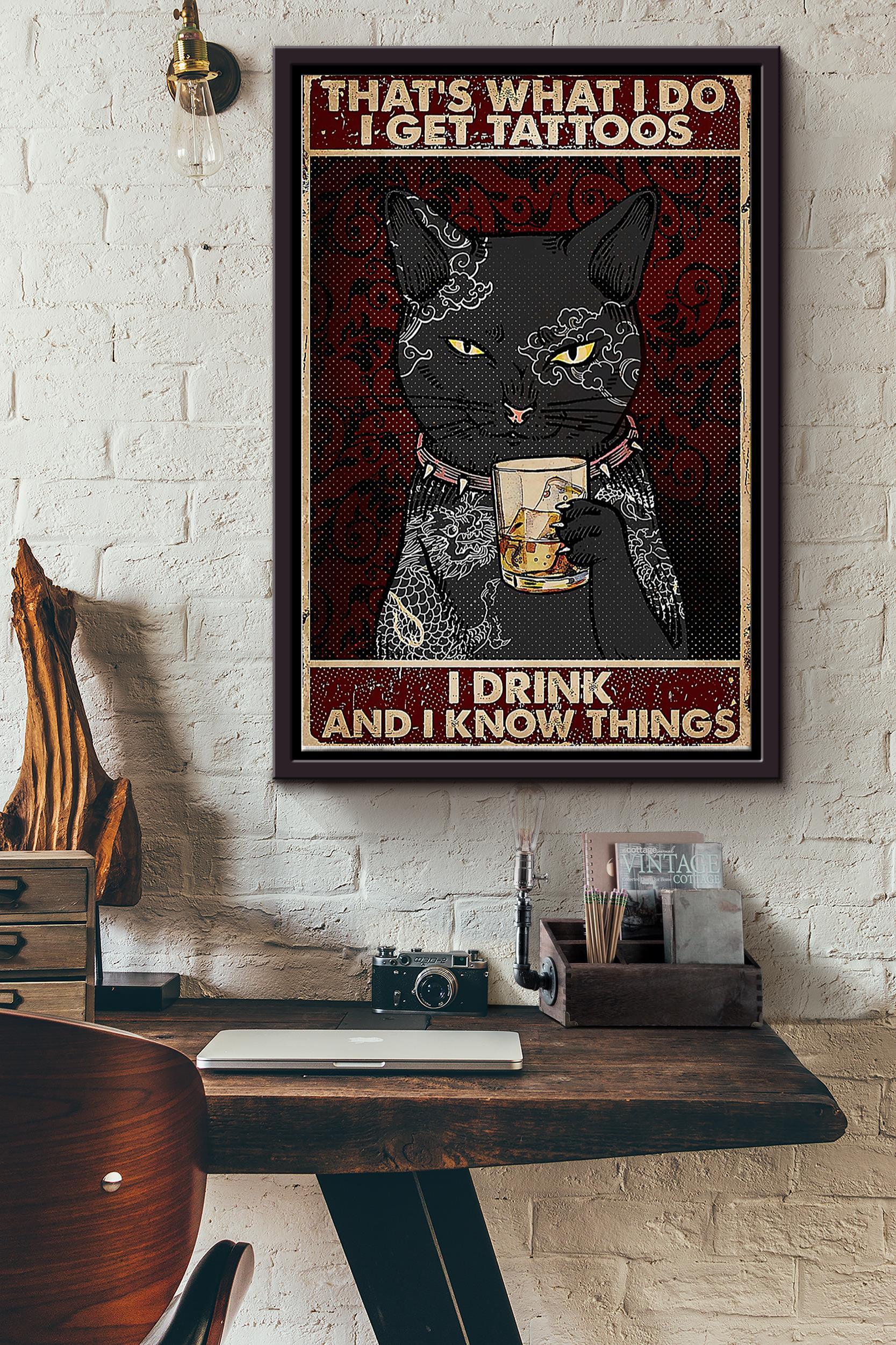 Thats What I Do I Get Tattoos I Drink And I Know Things Black Cat With Tattoos Poster Framed Matte Canvas
