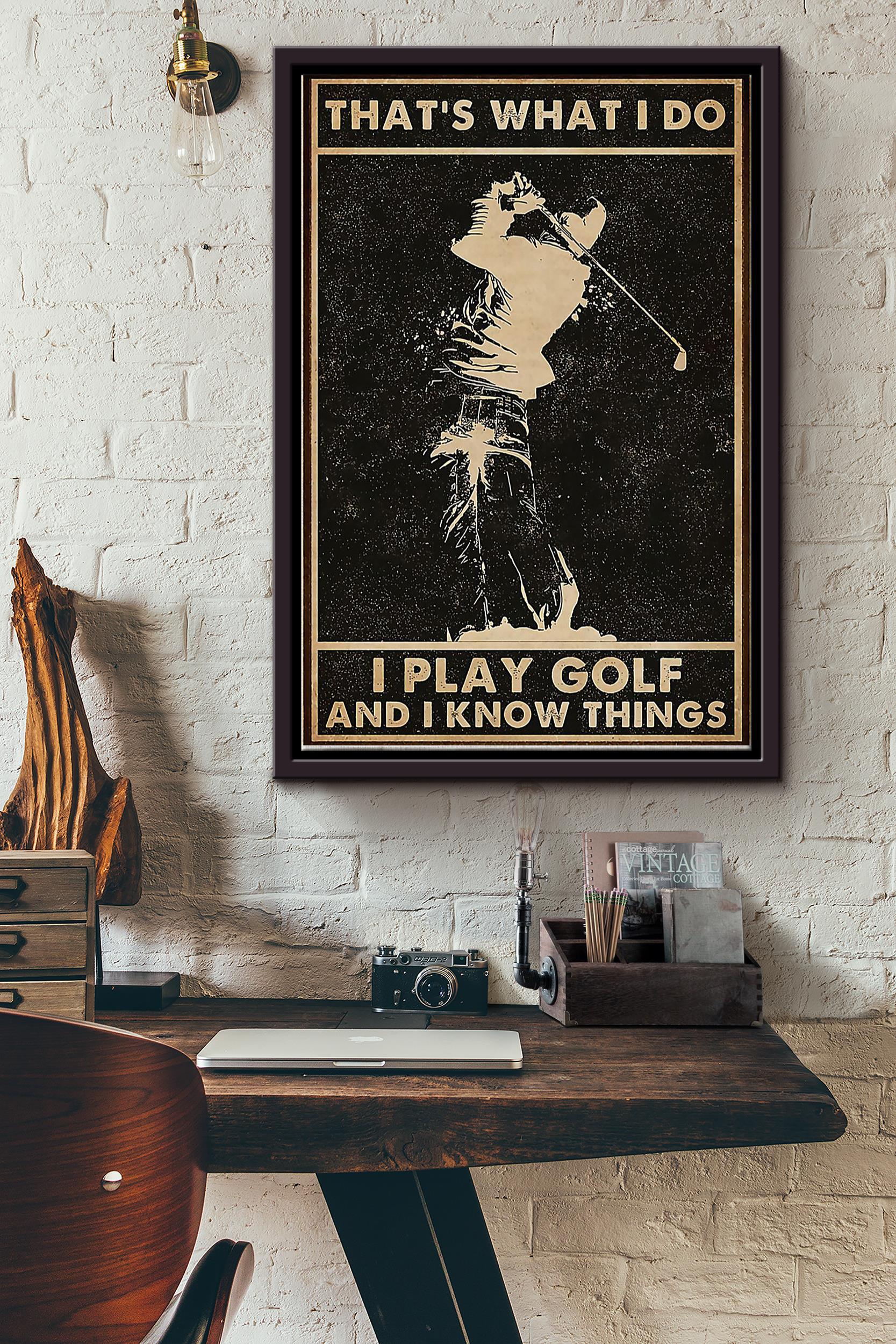 Thats What I Do I Play Golf And I Know Things Golf Poster Framed Matte Canvas