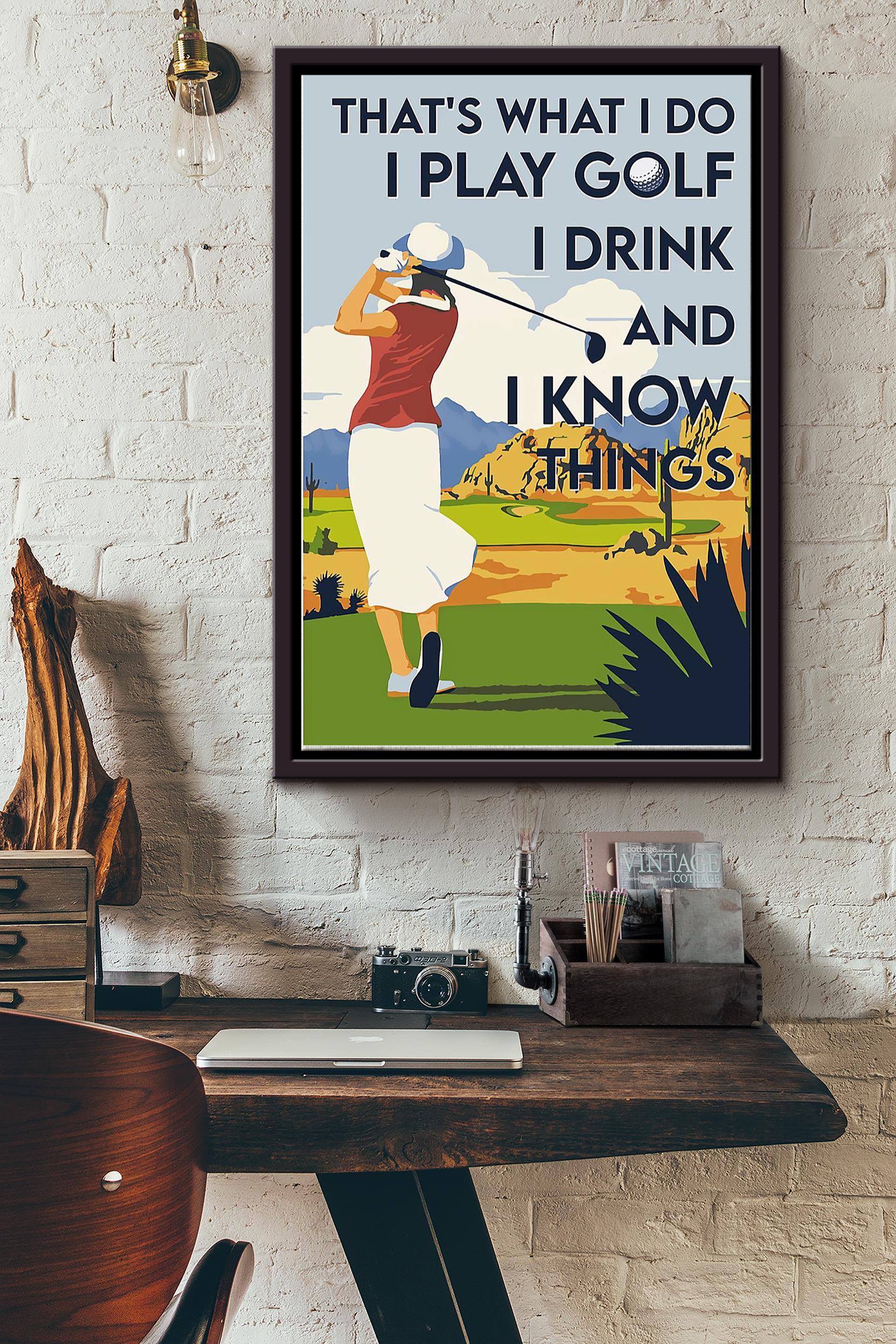 Thats What I Do I Play Golf I Drink And I Know Things Golf Poster Framed Matte Canvas