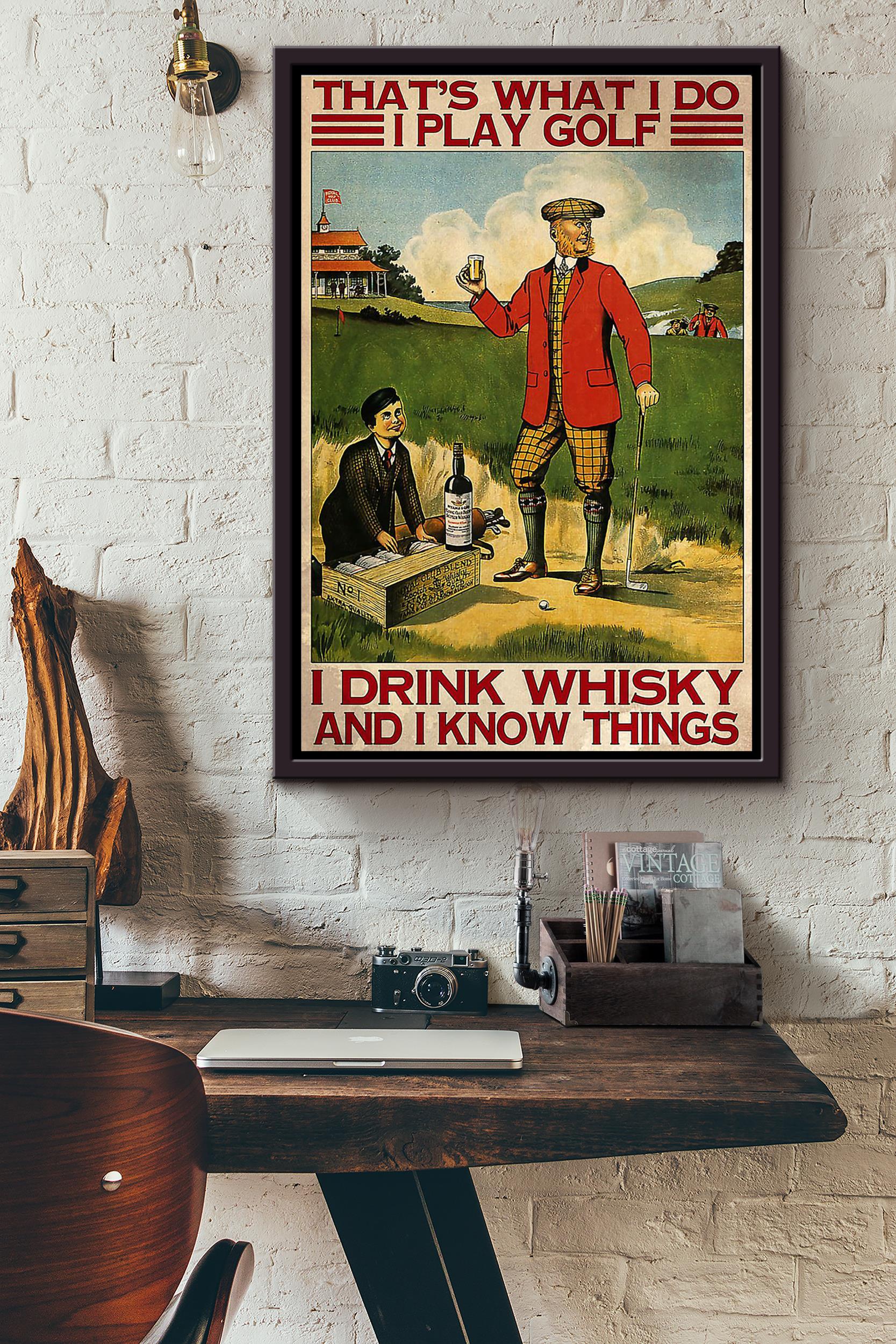 Thats What I Do I Play Golf I Drink Whisky And I Know Things Poster Framed Matte Canvas