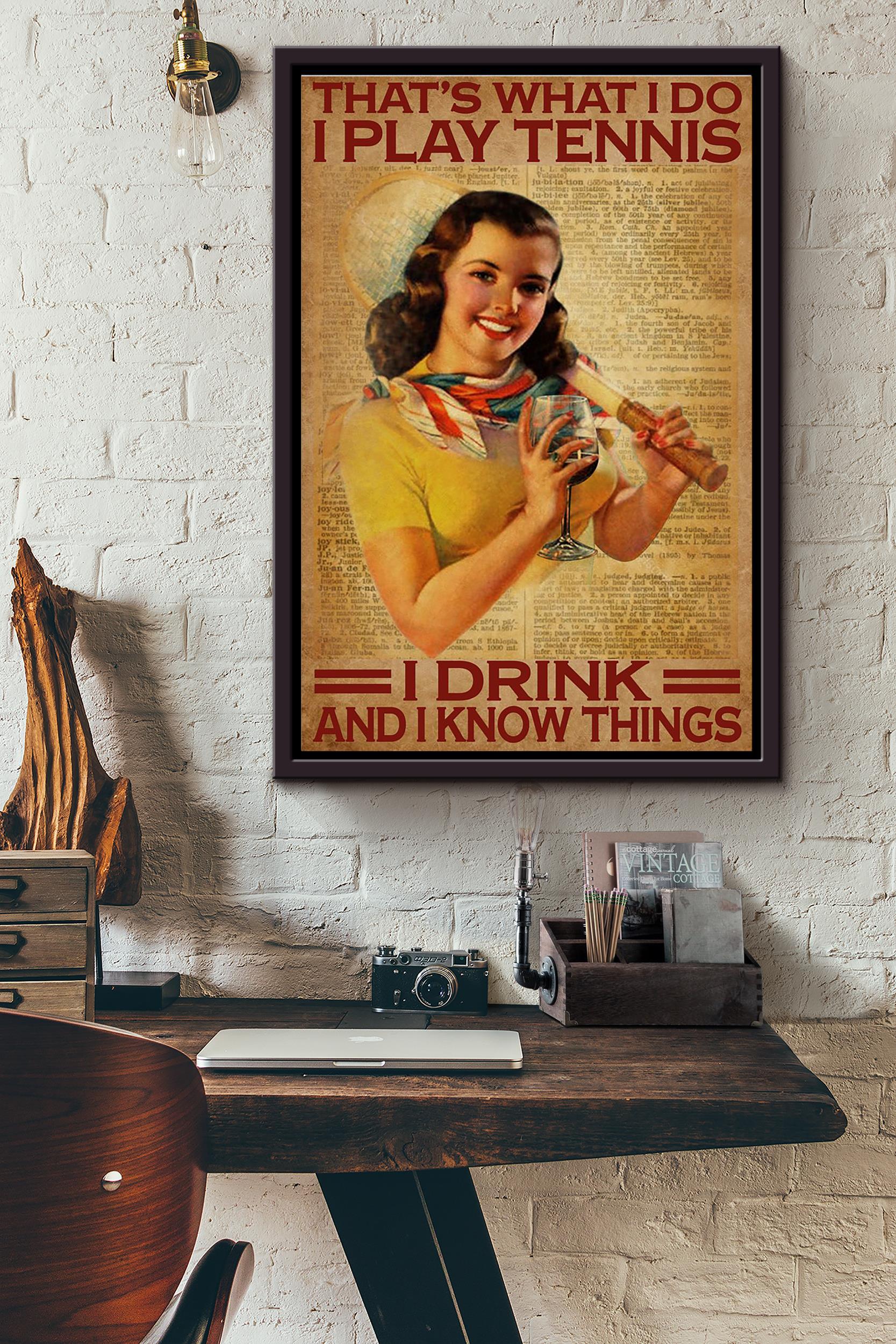 Thats What I Do I Play Tennis I I Drink Wine And I Know Things Tennis Girl Poster Framed Matte Canvas