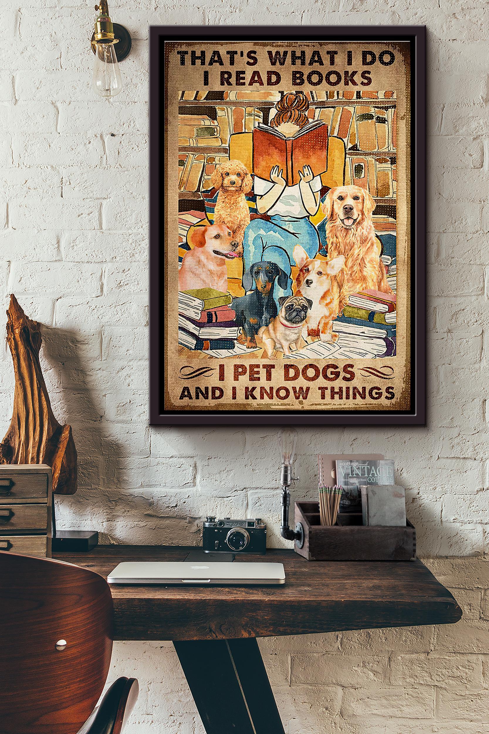 Thats What I Do I Read Books I Pet Dogs And I Know Things Poster Framed Matte Canvas
