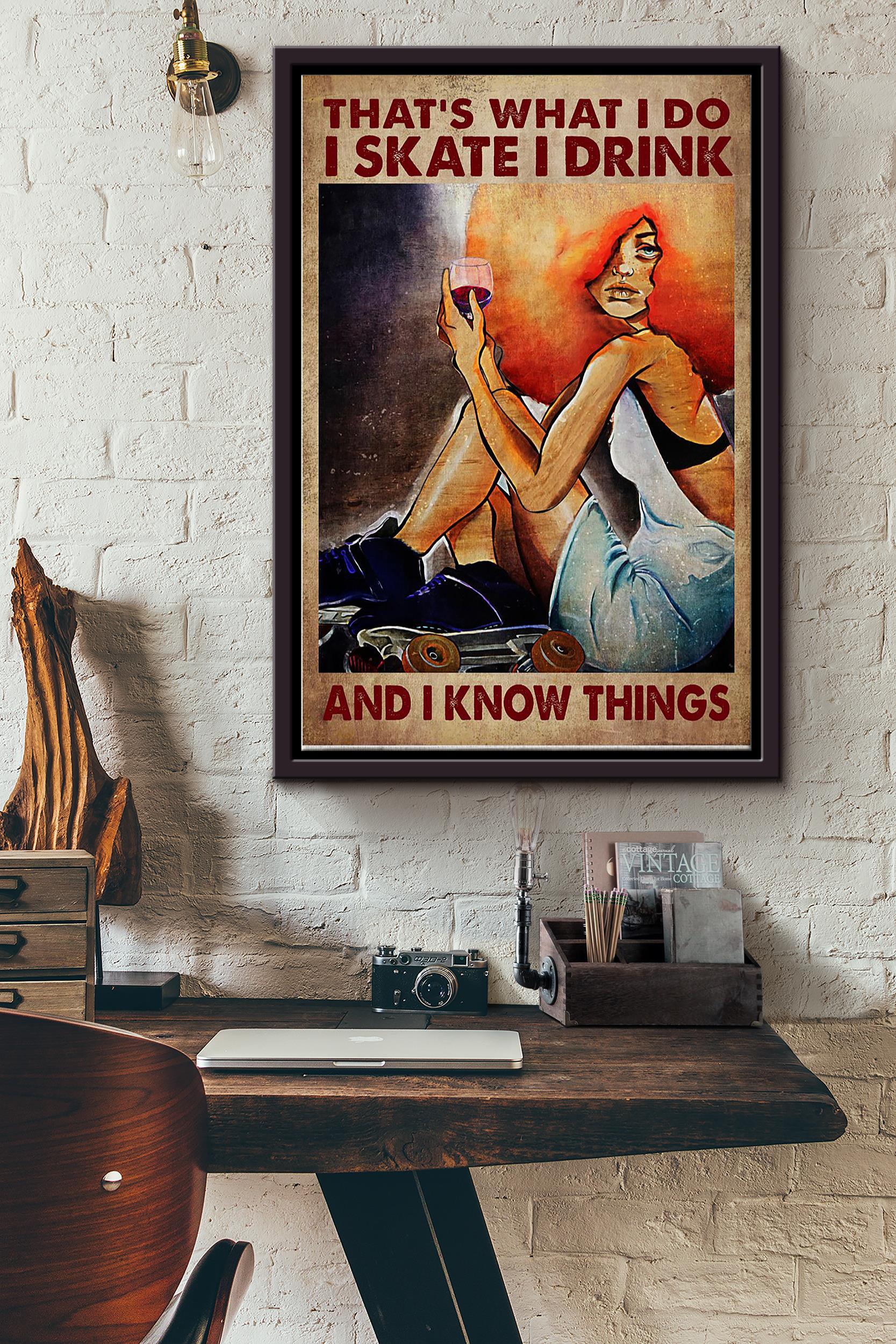 Thats What I Do I Skate I Drink And I Know Things Skate Girl Poster Framed Matte Canvas