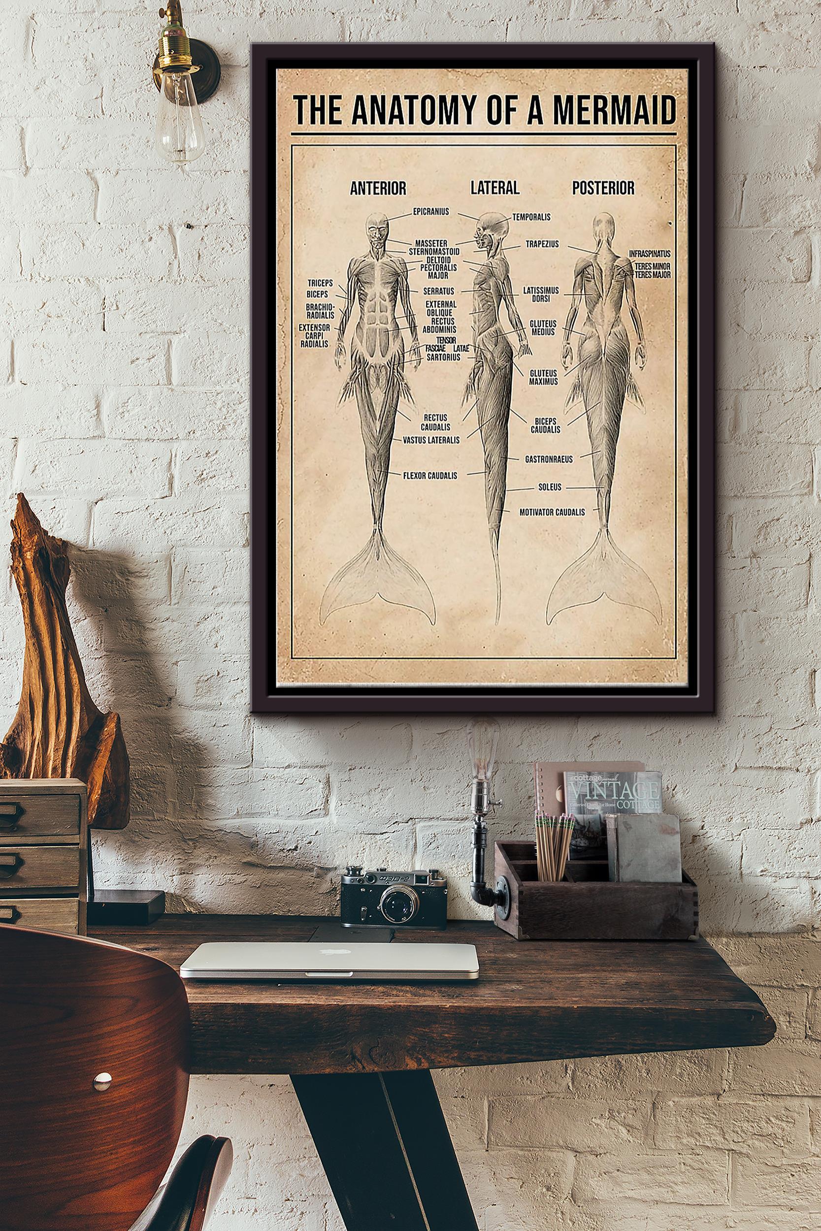 The Anatomy Of A Mermaid Drawing Poster Framed Matte Canvas