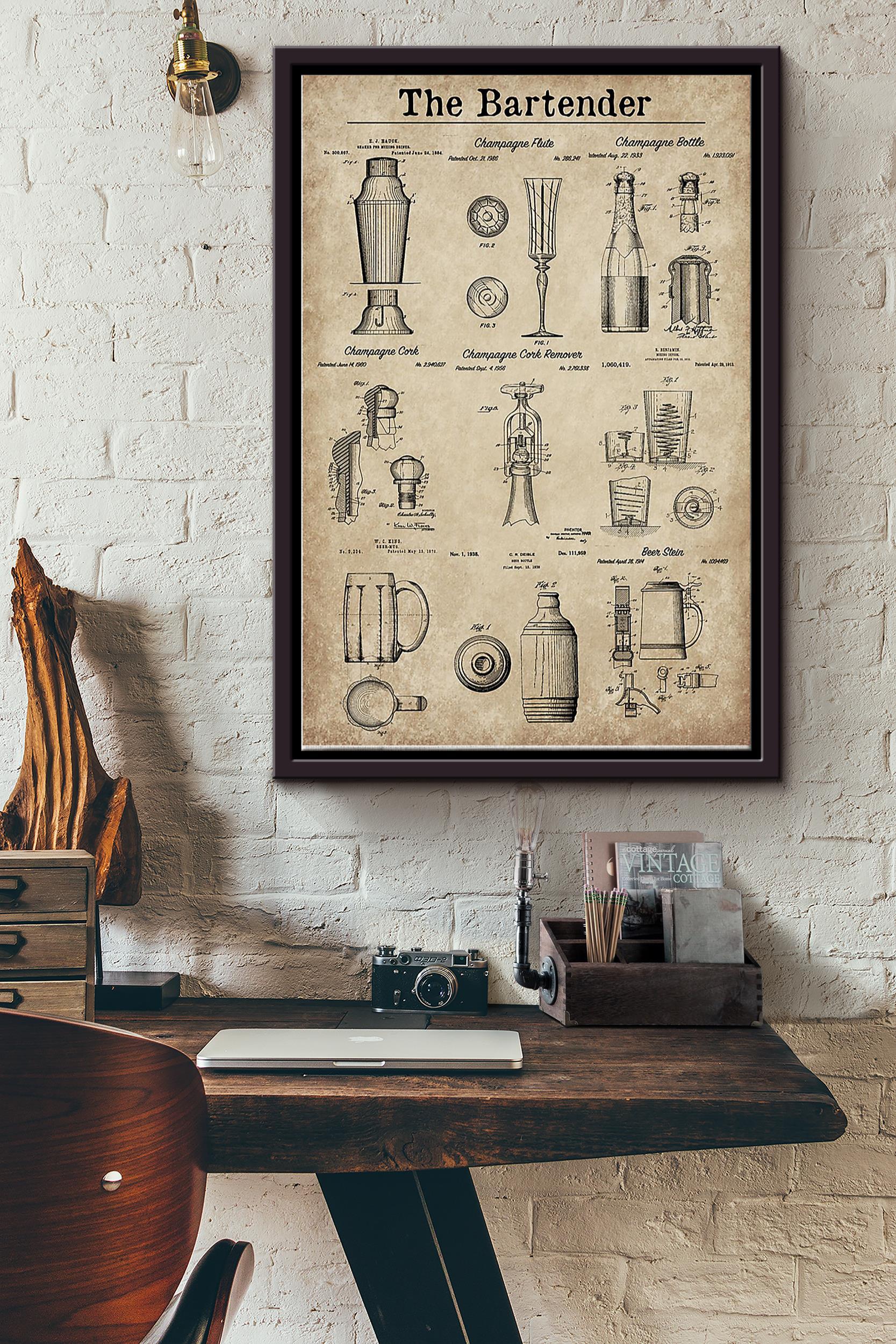 The Bartender Details Poster Framed Matte Canvas