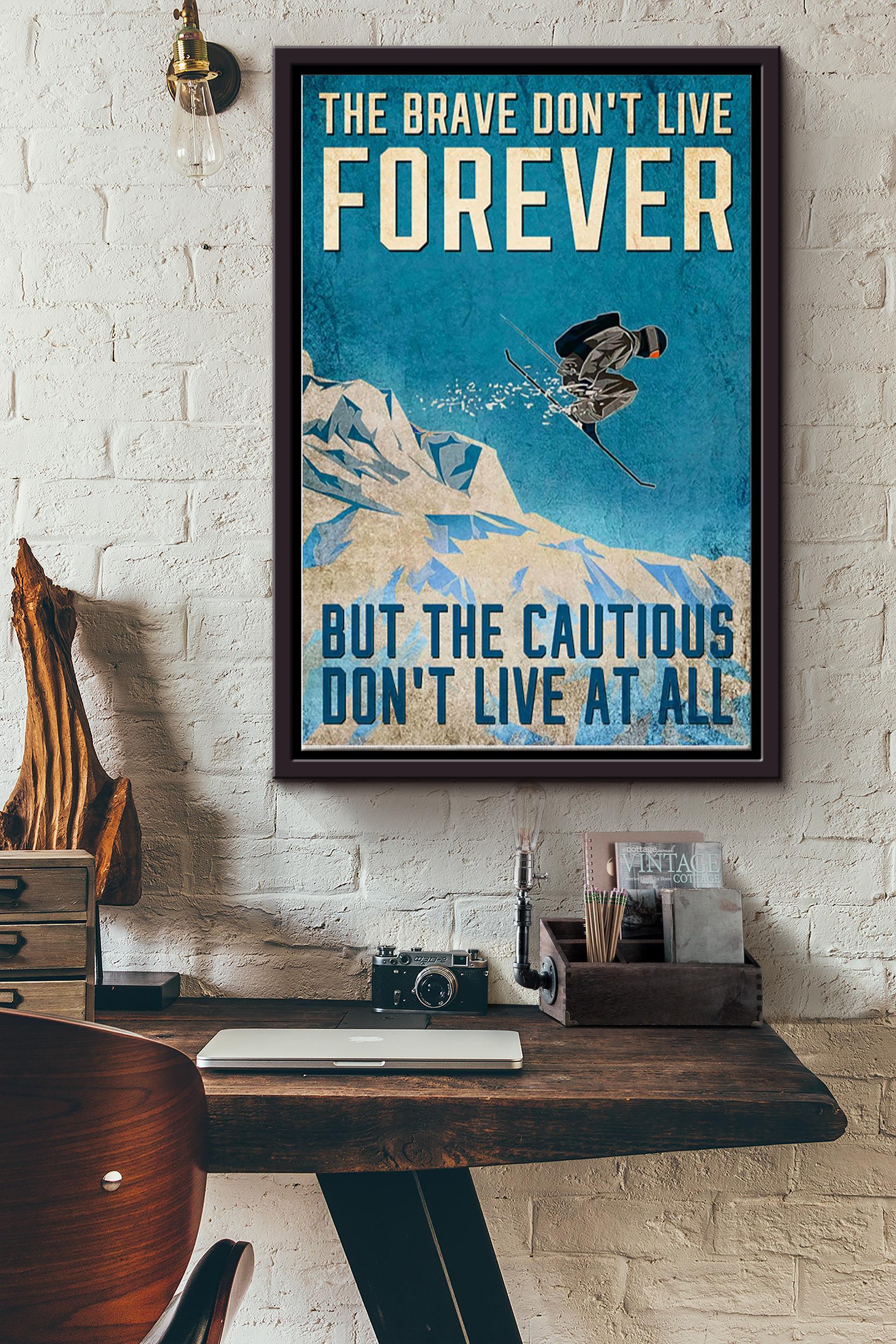 The Brave Dont Live Forever But Teh Cautious Dont Live At All Skiing Poster Framed Matte Canvas