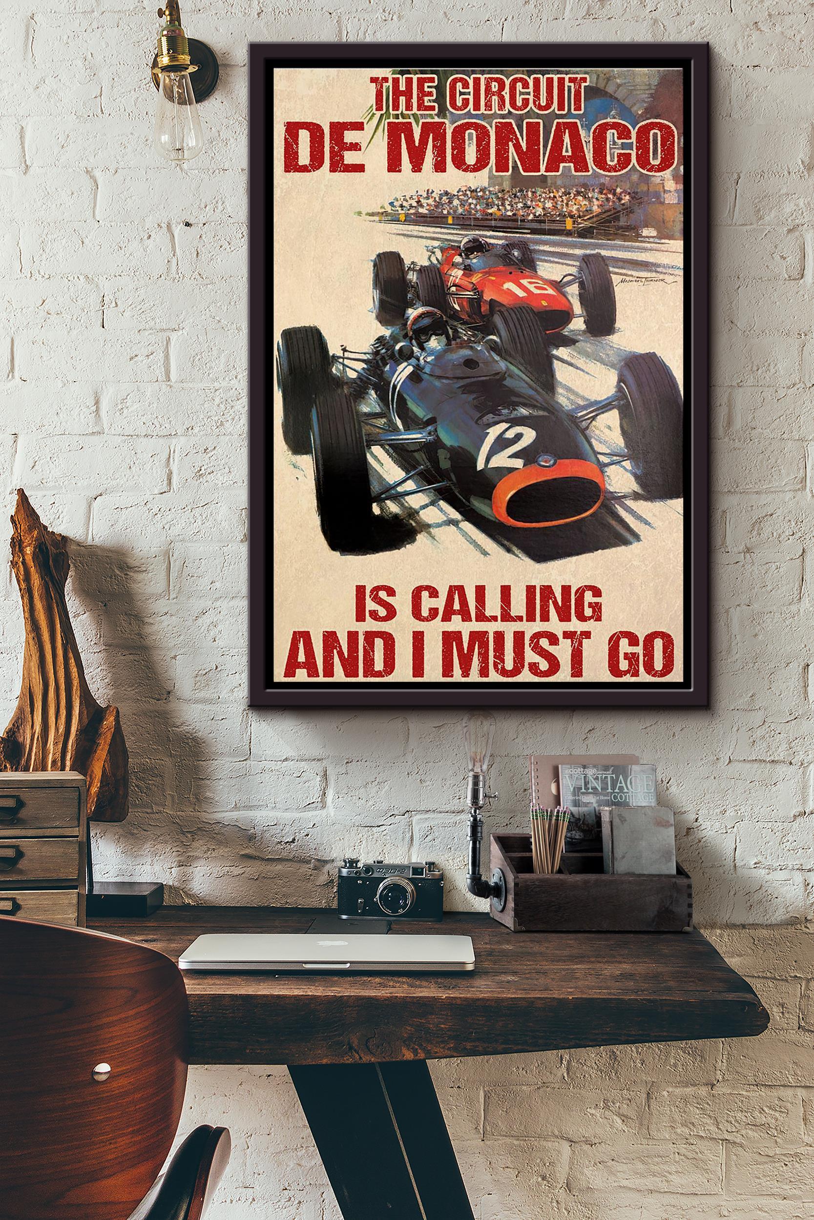The Circuit De Monaco Is Calling And I Must Go Car Racing Poster Framed Matte Canvas