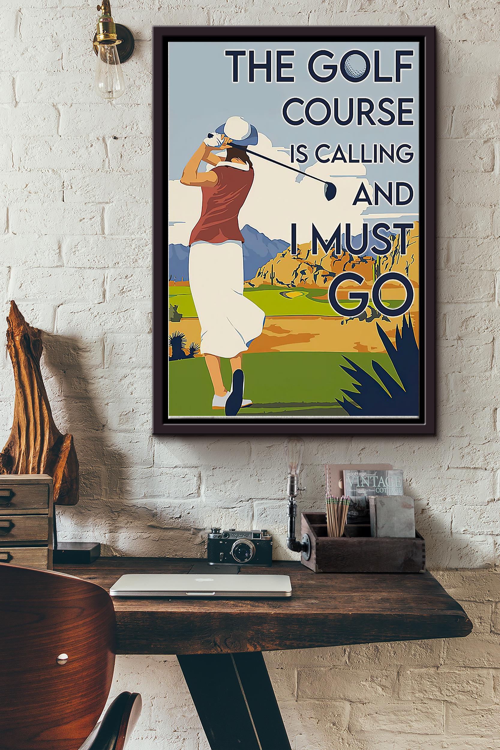 The Golf Course Is Calling And I Must Go Girl Playing Golf Vintage Poster Framed Matte Canvas