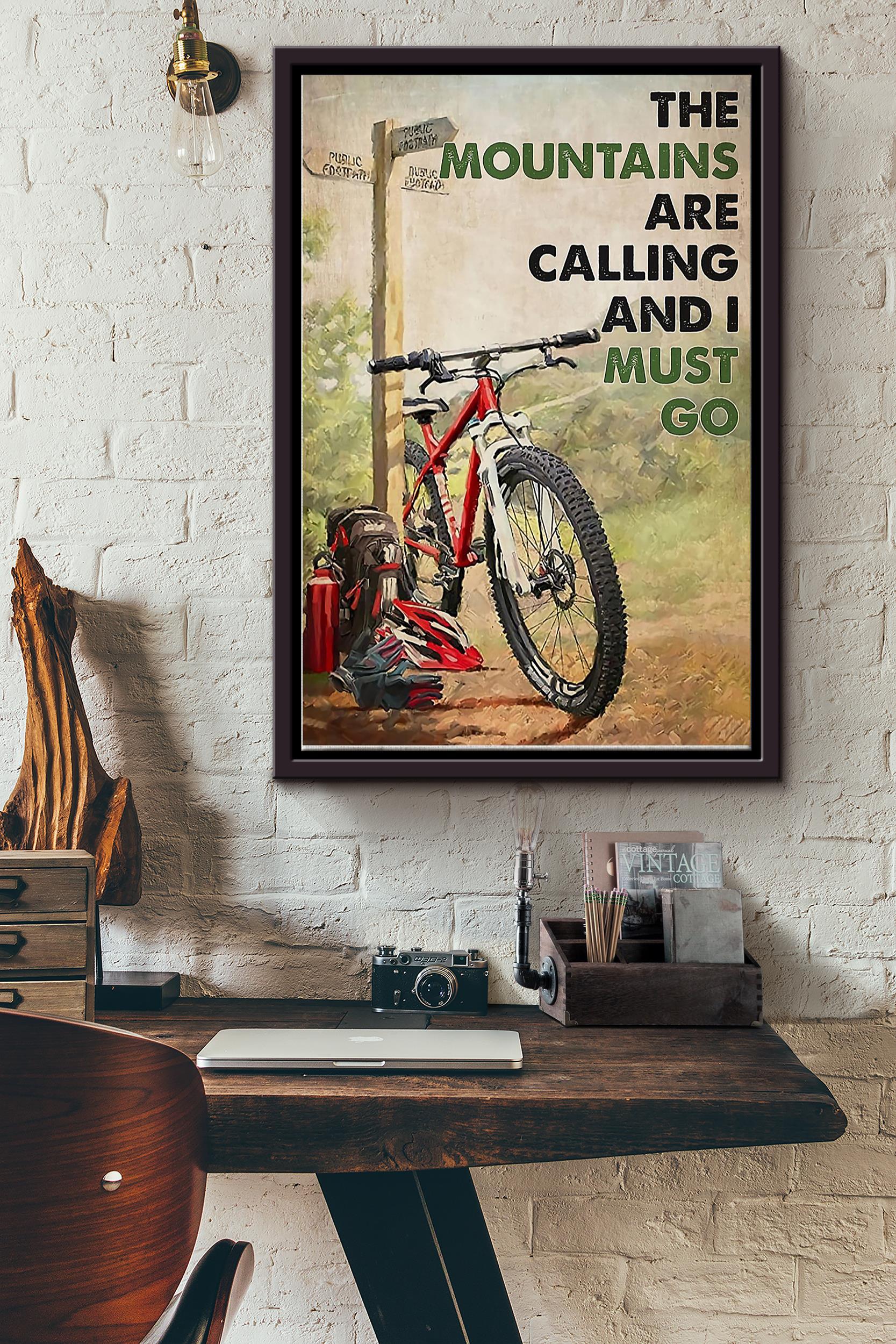 The Mountain Is Calling And I Must Go Cycling Poster Framed Matte Canvas