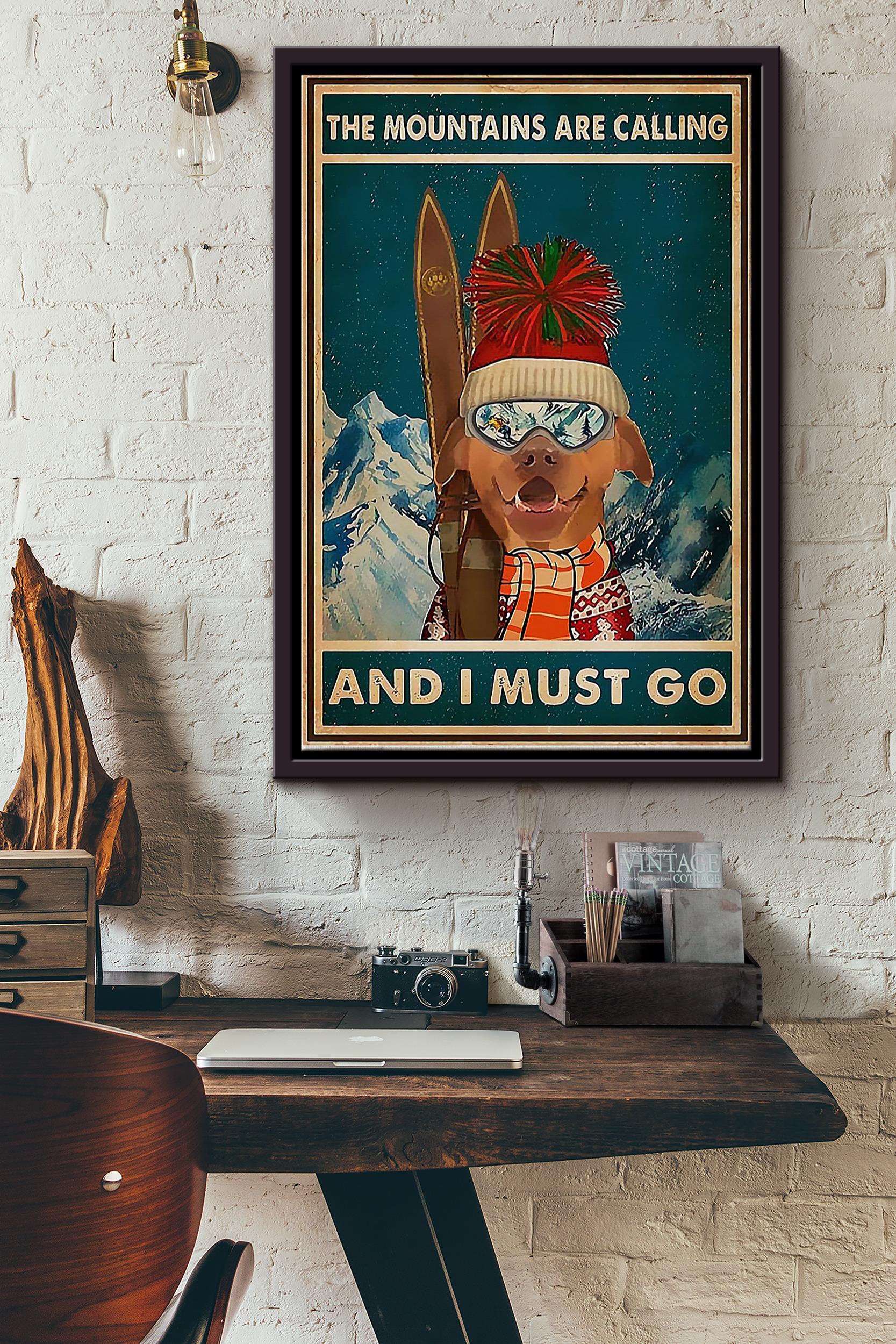 The Mountains Are Calling And I Must Go Skiing Dog Poster Framed Matte Canvas