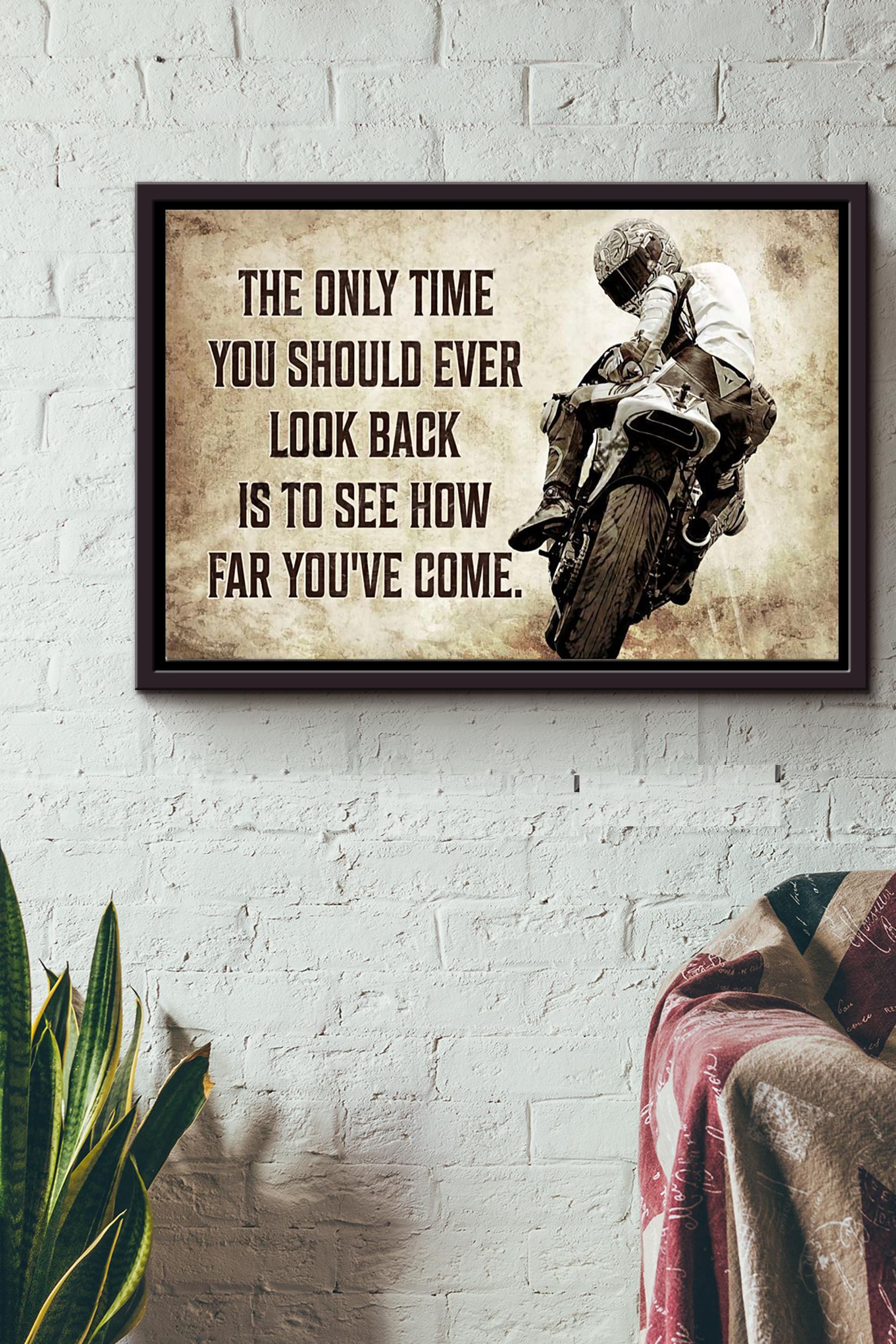 The Only Time You Should Ever Look Back Is To See How Far Youve Come Motocycle Poster N Framed Matte Canvas