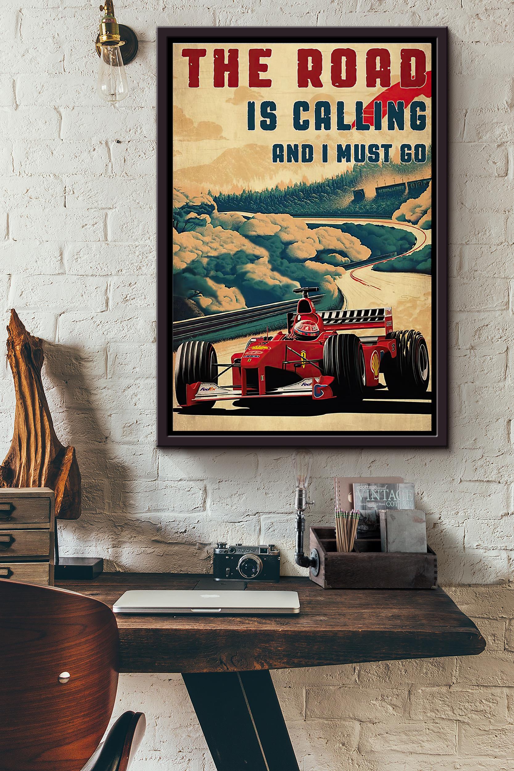 The Road Is Calling And I Must Go Racing Car Poster Framed Matte Canvas