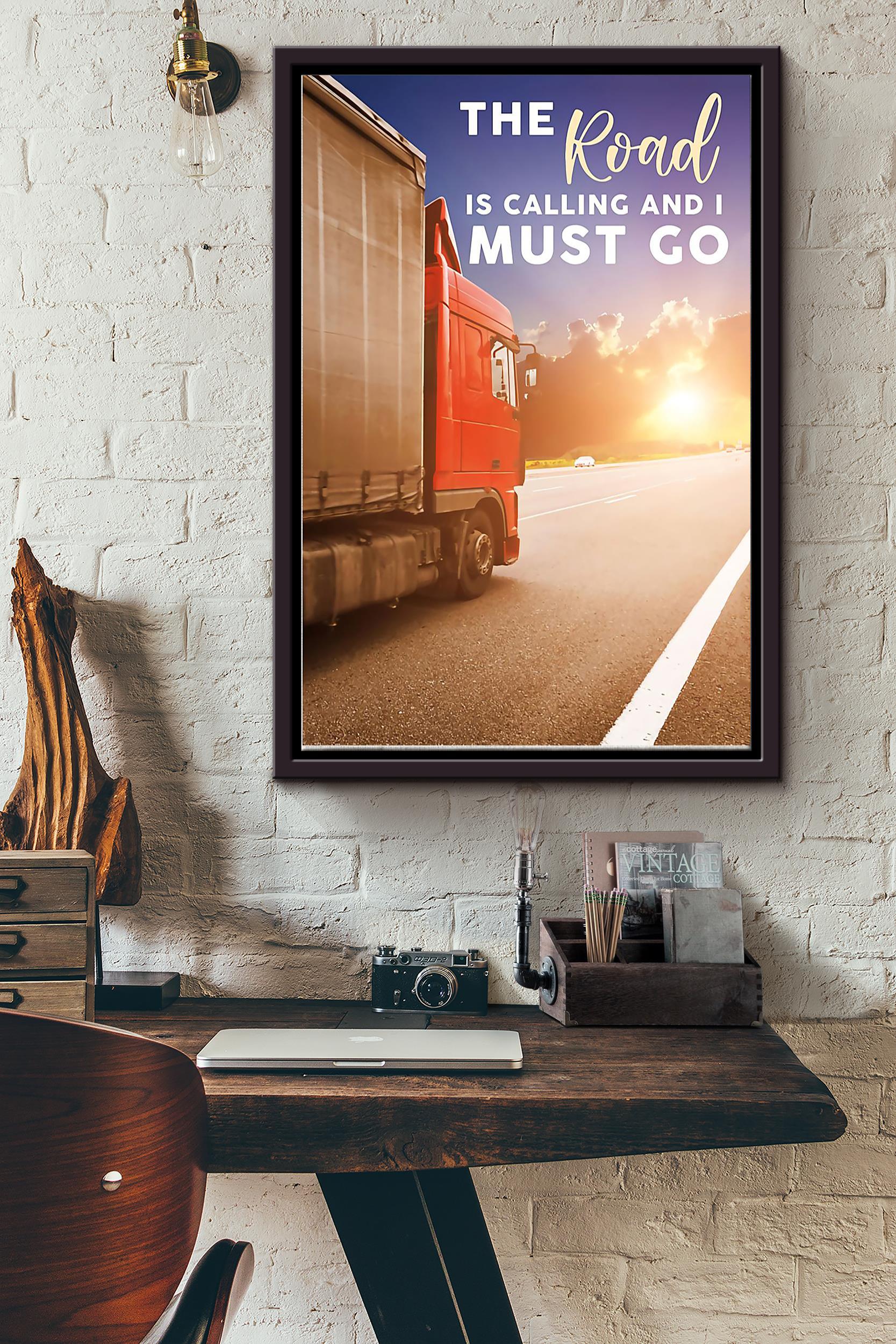 The Road Is Calling And I Must Go Trucker Poster Framed Matte Canvas